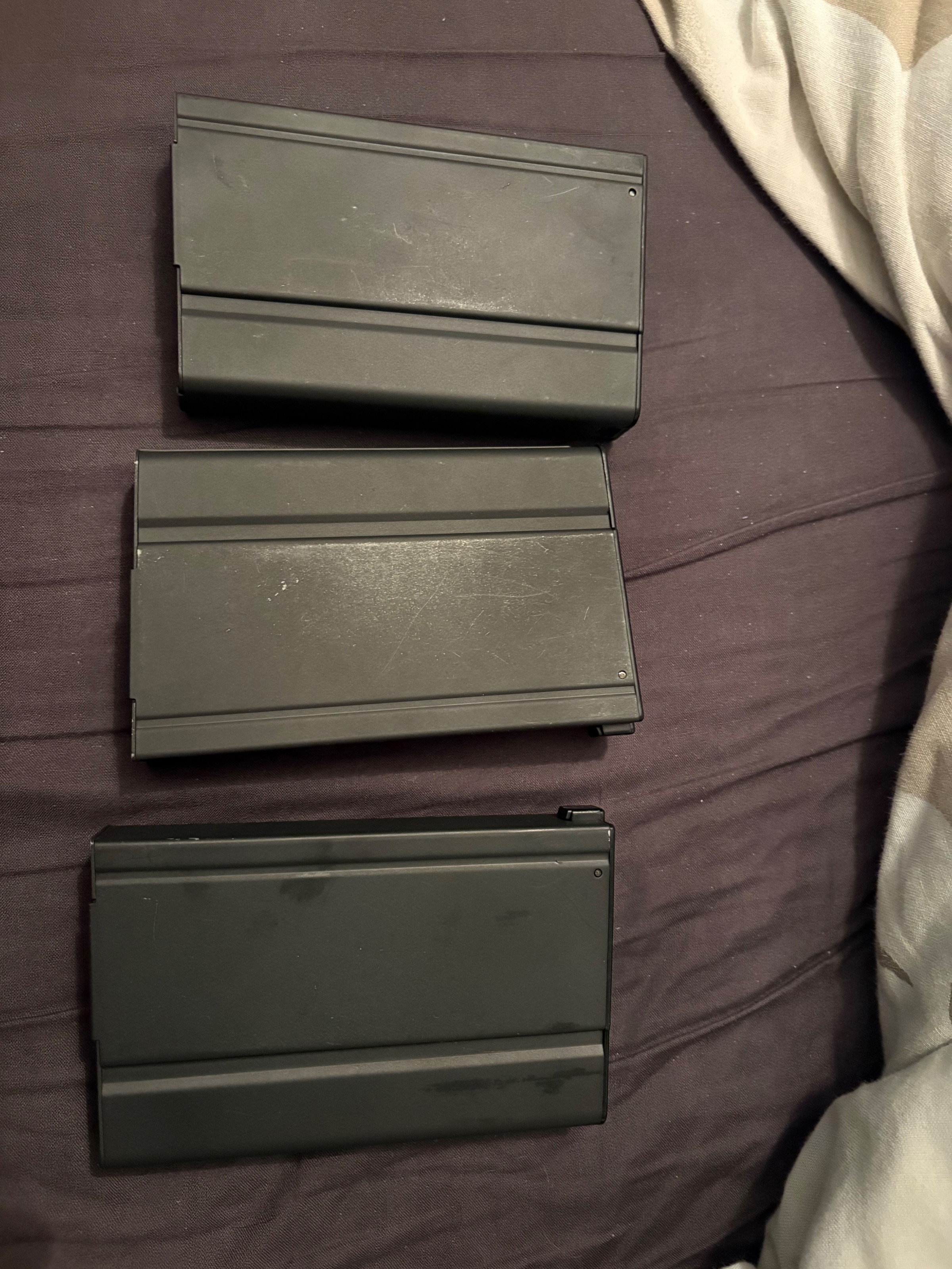 Hierbij bied ik mijn Tokyo Marui M14 OD Green aan, inclusief 3 mid-cap magazijnen.