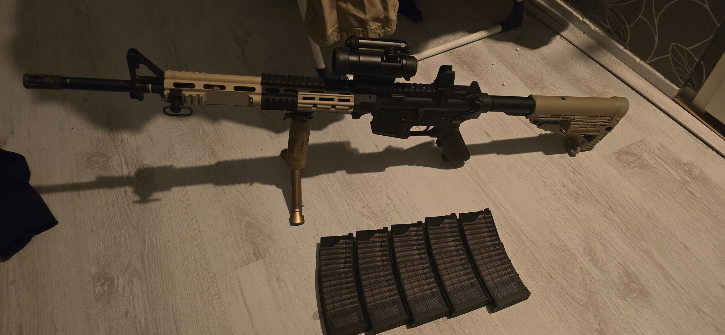 C7NLD Railkit; Railkit, B&T Bipod foregrip, replica Aim-O reddot, CAA Stock)
