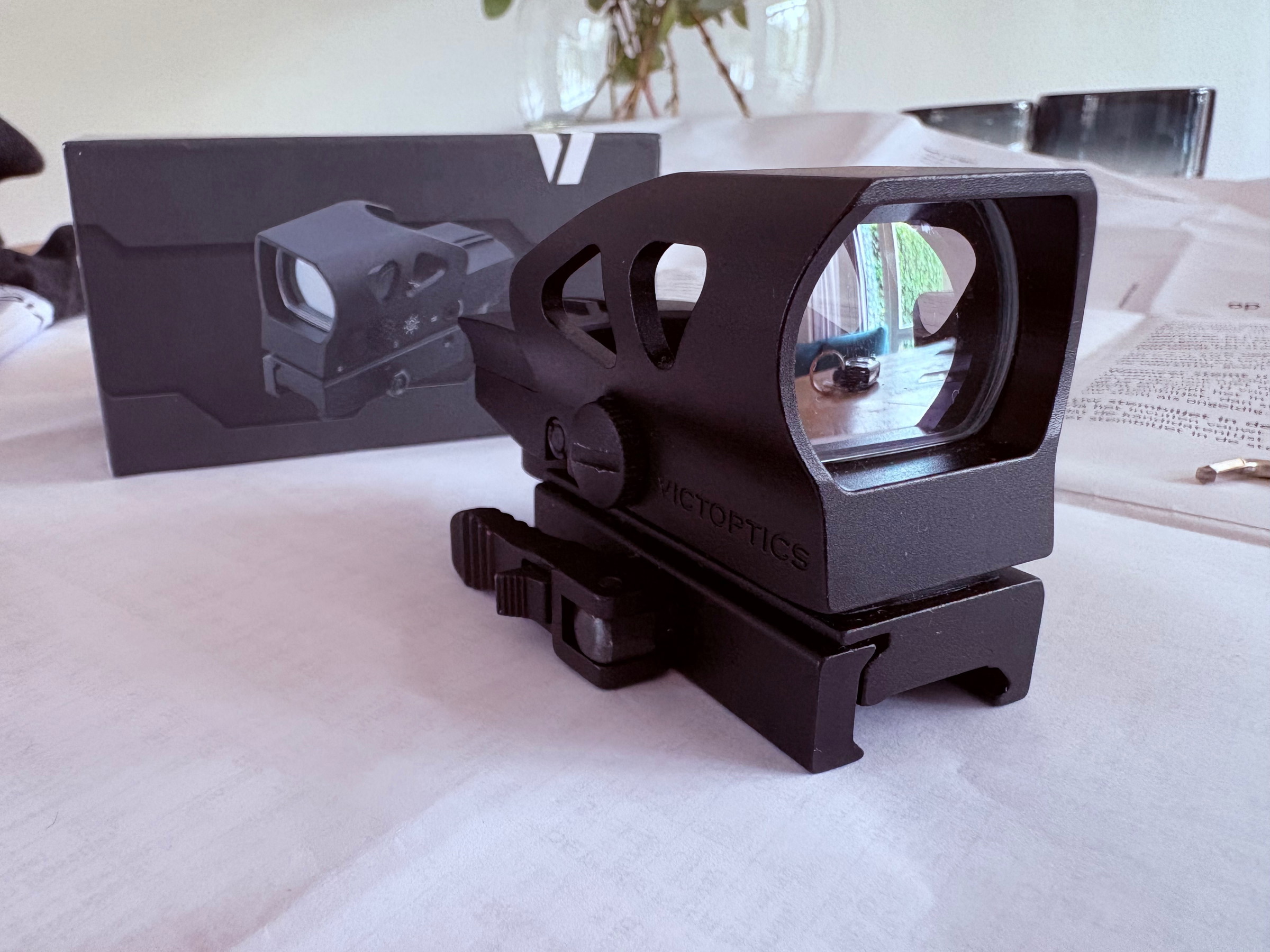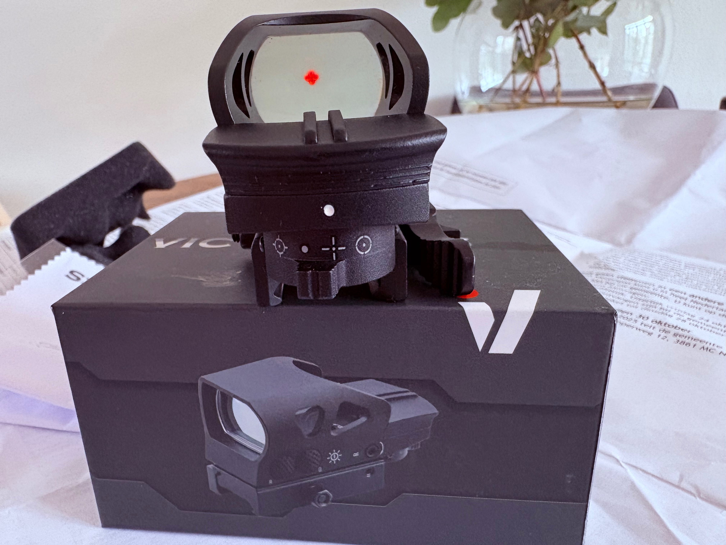 De Z4 heeft een 1x vergroting met een lensopening van 23x34mm, wat zorgt voor een helder en breed gezichtsveld zonder vergroting. De parallax is ingesteld op 1 MOA op 80 yards met vrije eye relief – dat betekent dat je hoofd niet in een vaste positie hoeft te zijn voor een scherp richtpunt.