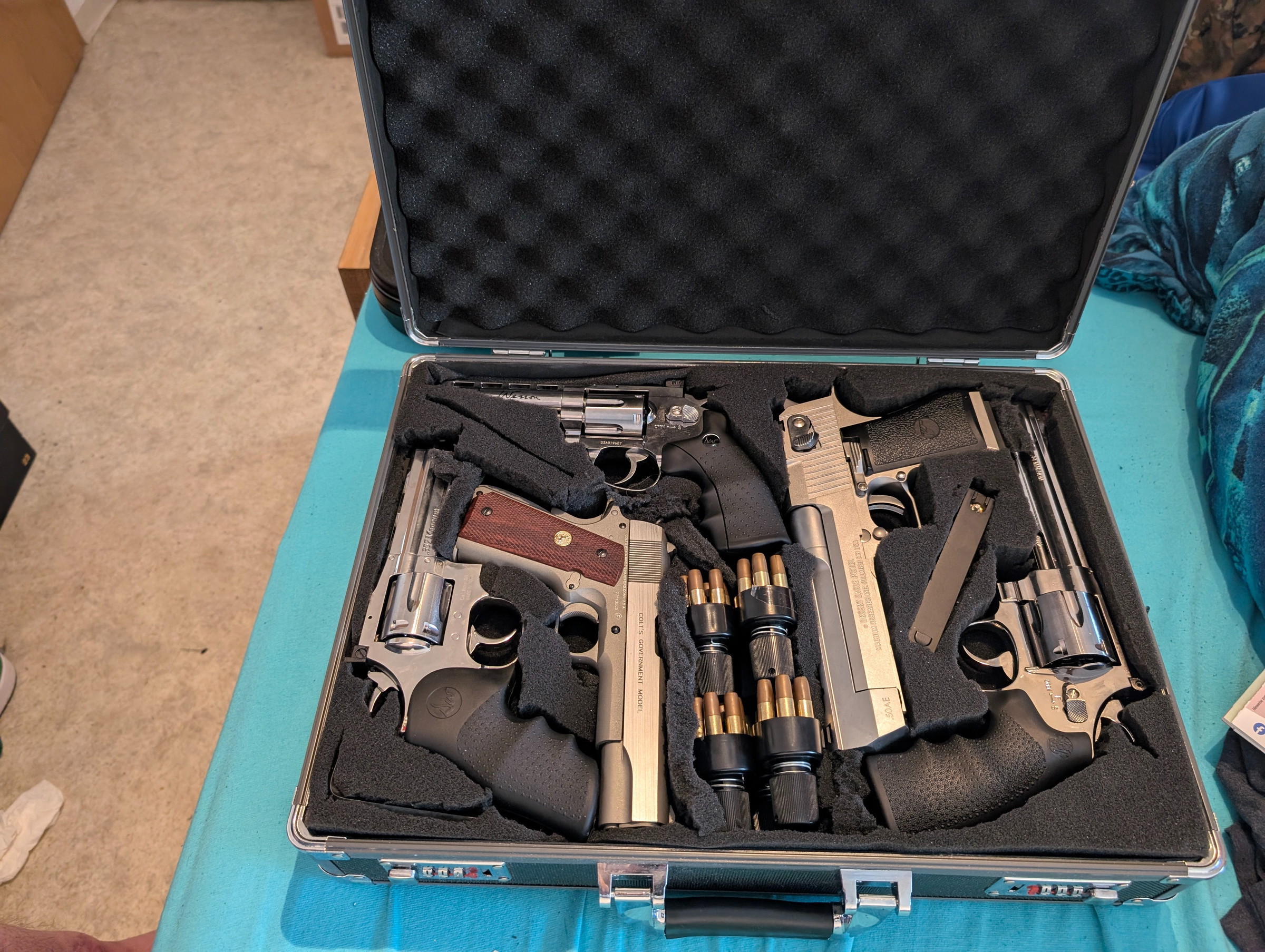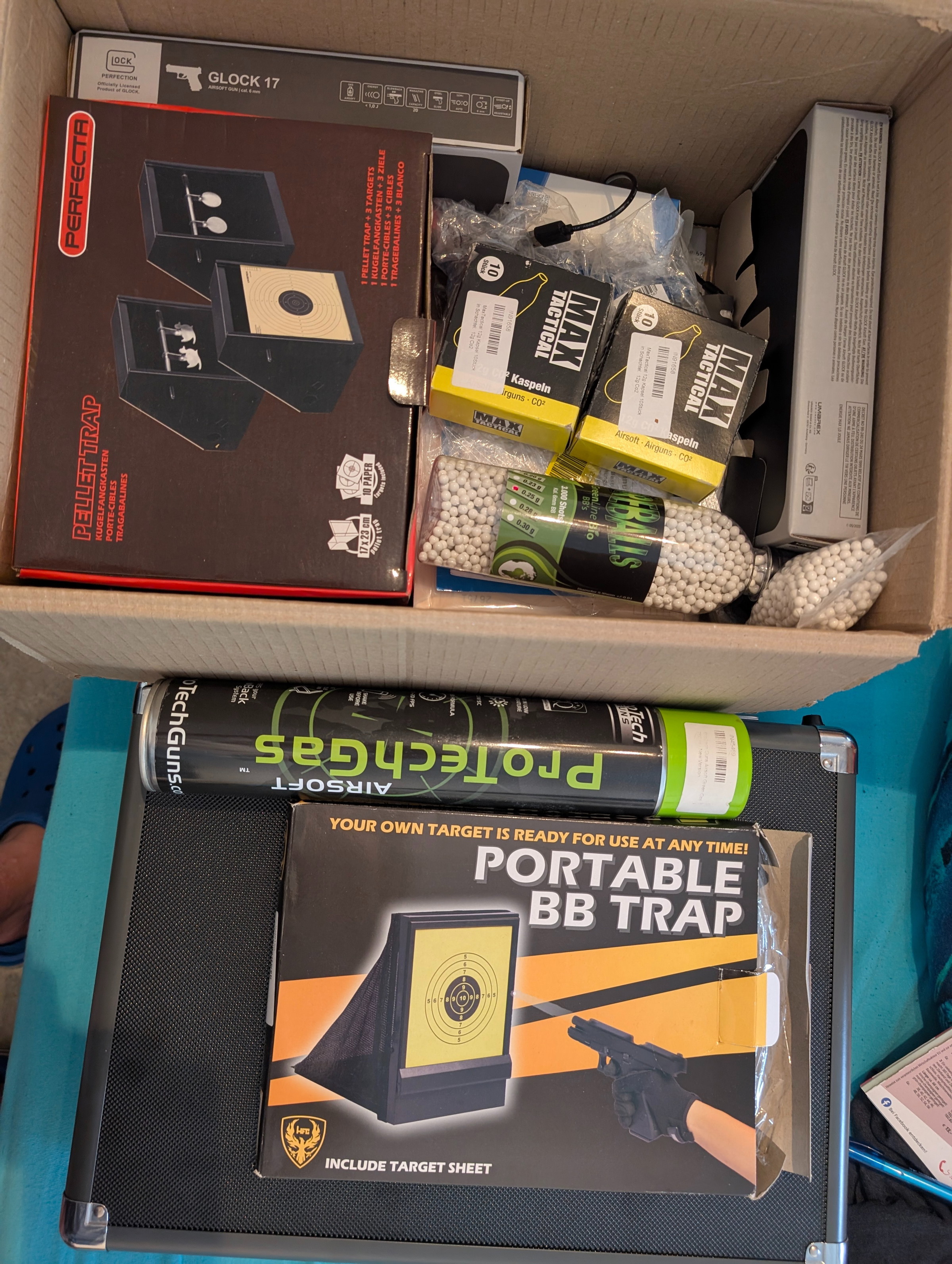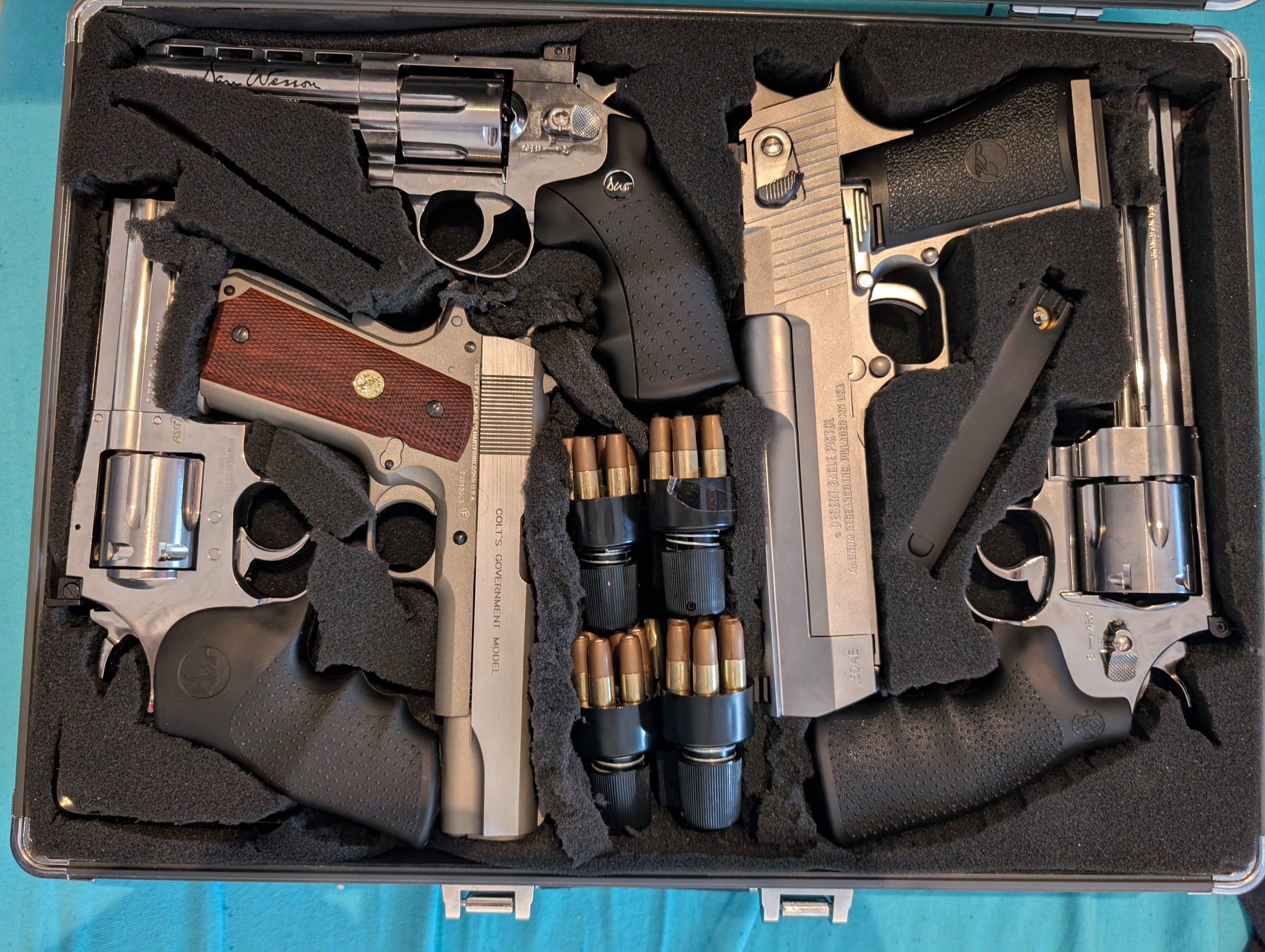 Dann gibt es noch sehr viel extra Zubehör dazu. Co2 Kapseln, TreibGas Flasche, 2 verschiede Zielrichtungrn inkl. Zielscheiben, BB Balls, Speedloader für Magazine den Großen Koffer wo sich die 5 Revolver und Pistolen, Colts befinden, + 2x Glock Koffer und noch einiges mehr an Zubehör....