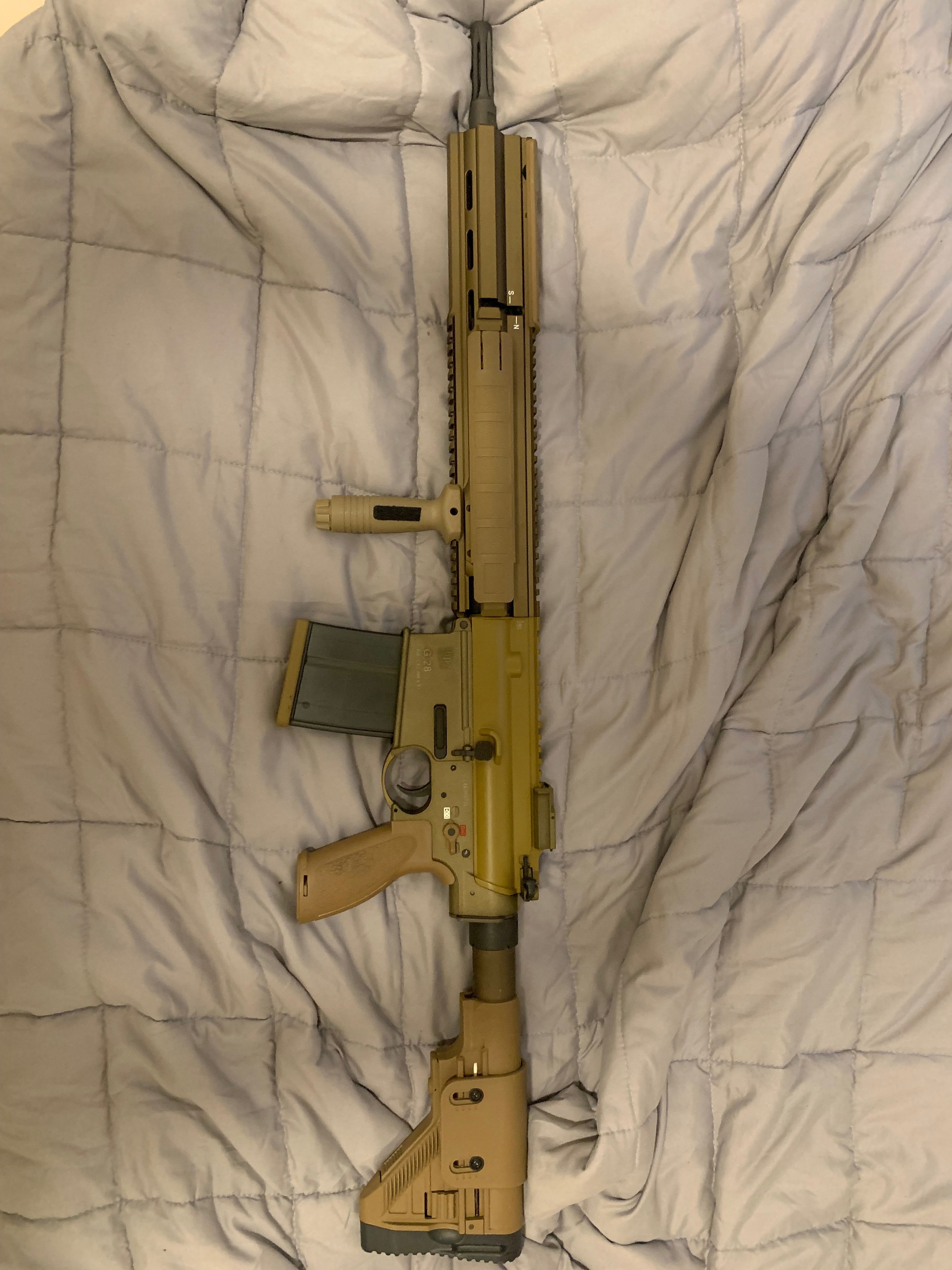 Het geweer schiet perfect en is van buiten in nieuwstaat. Het is uitgerust met een VFC M110A1 bufferbuis met een E&C G28 kolf en railafdekkingen.