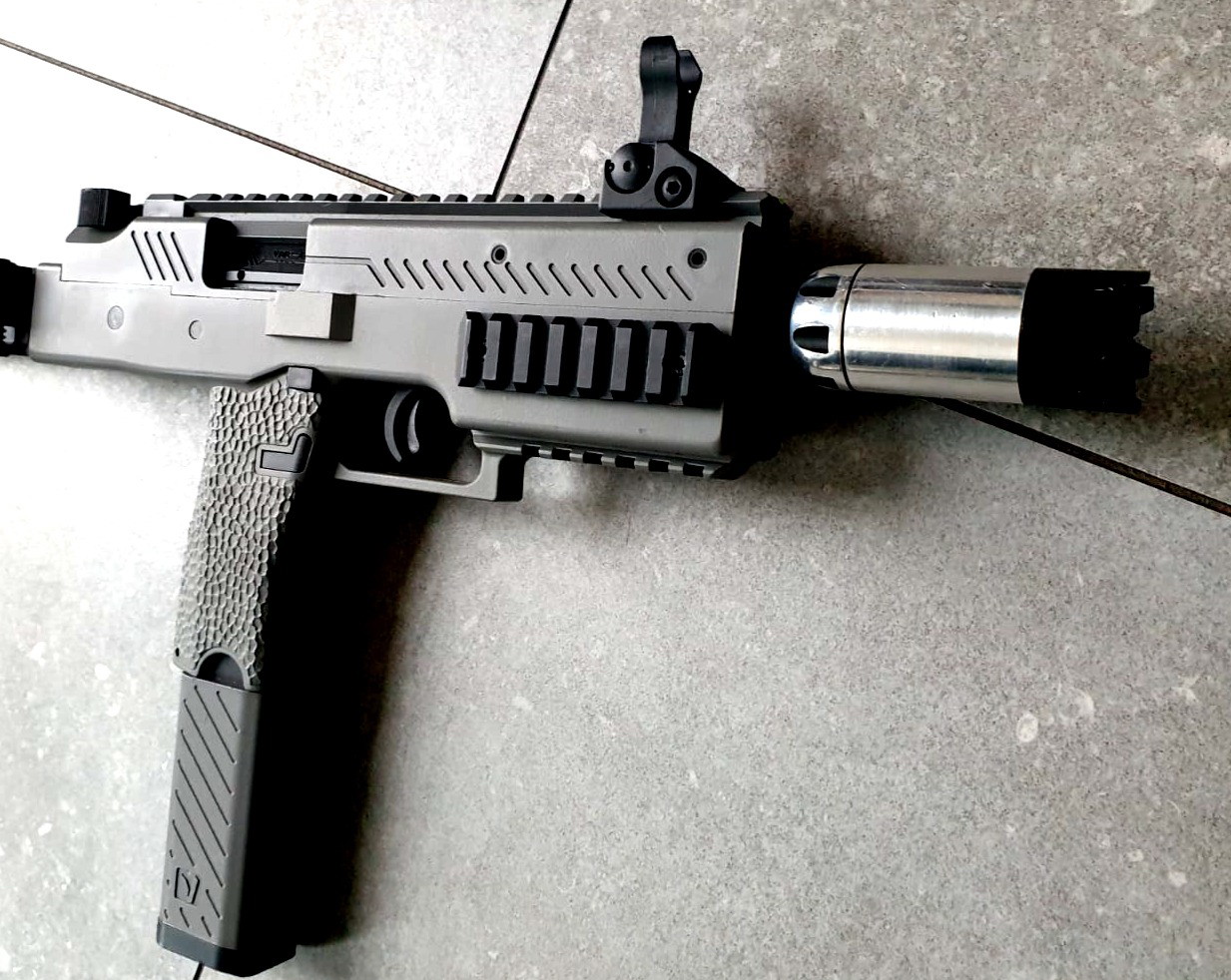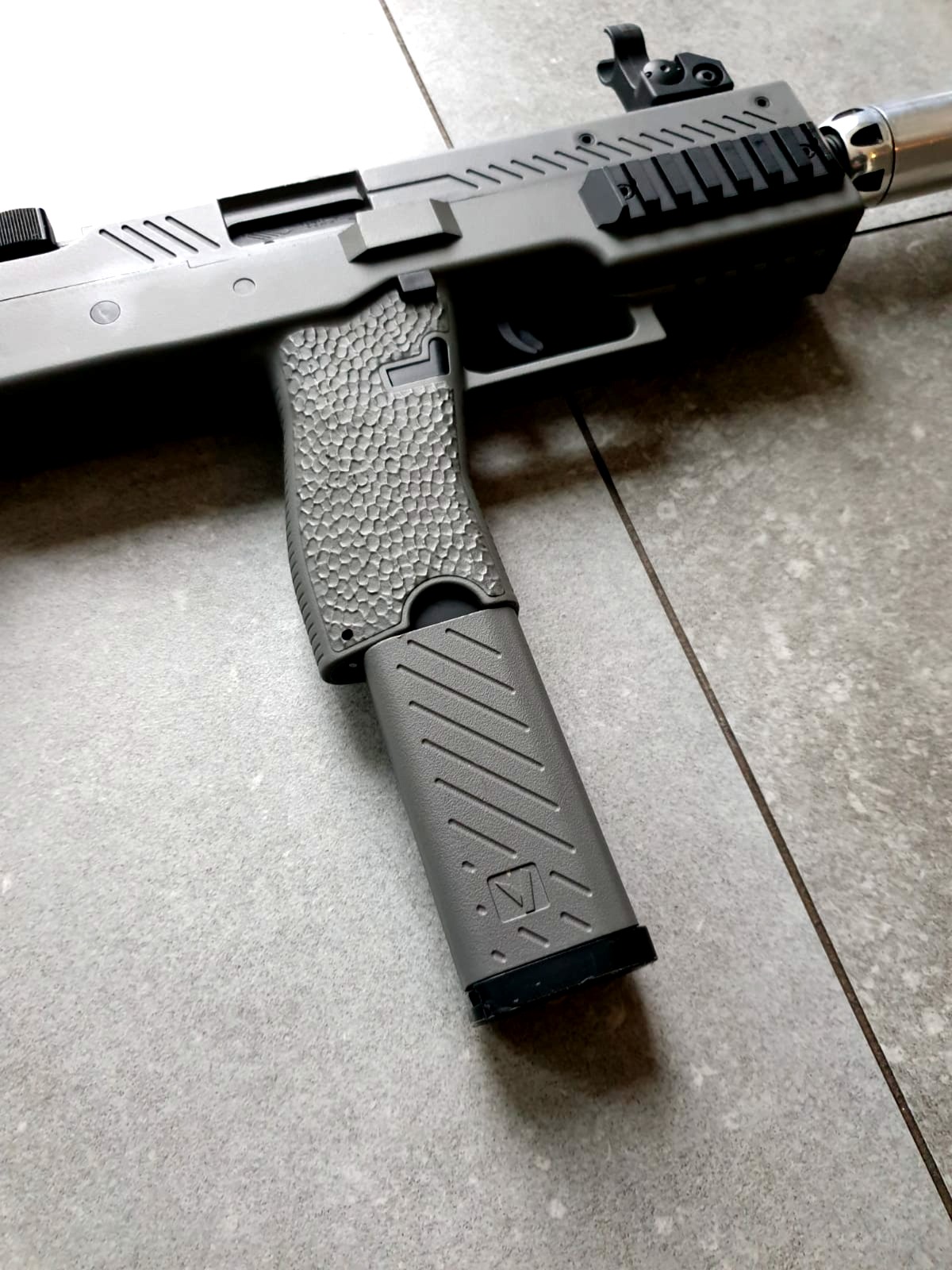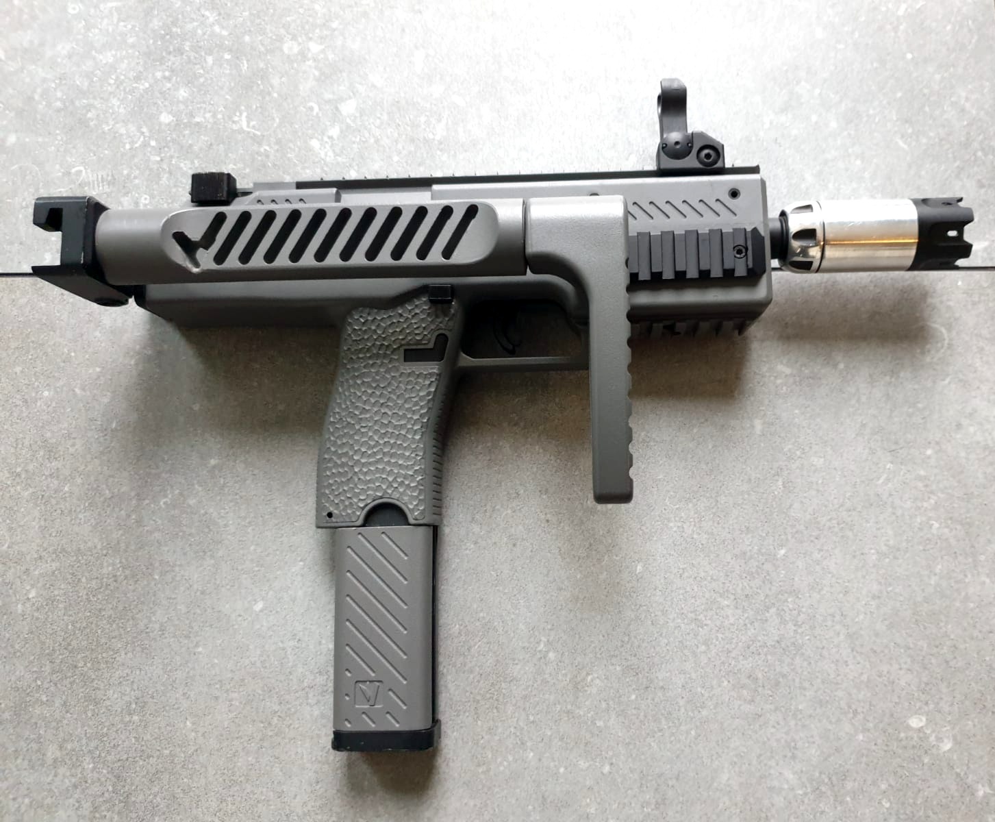 • Deze SMG onderscheidt zich door de unieke aanpasbaarheid – je kunt de inklapbare kolf verwijderen en een M4 buffer tube monteren. Hierdoor kun je jouw favoriete M4-kolf gebruiken voor optimaal comfort. Het MP9-platform staat bekend om zijn compacte formaat en hoge vuursnelheid, wat deze replica perfect nabootst. De combinatie van polymeer en metaal zorgt voor een realistische look en feel.