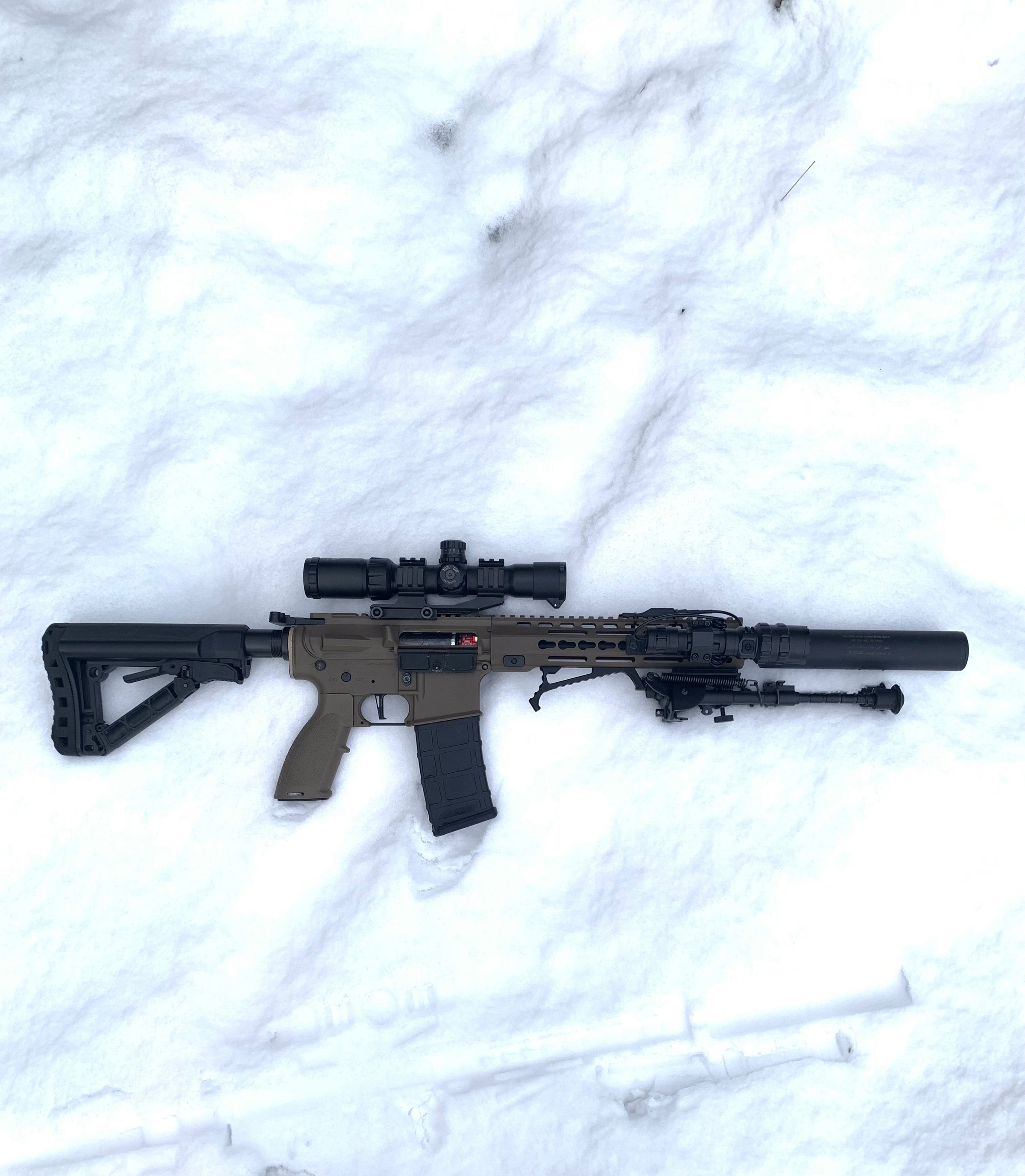 • Momenteel gemonteerd: 14 inch barrel + M120 veer (DMR-ready)