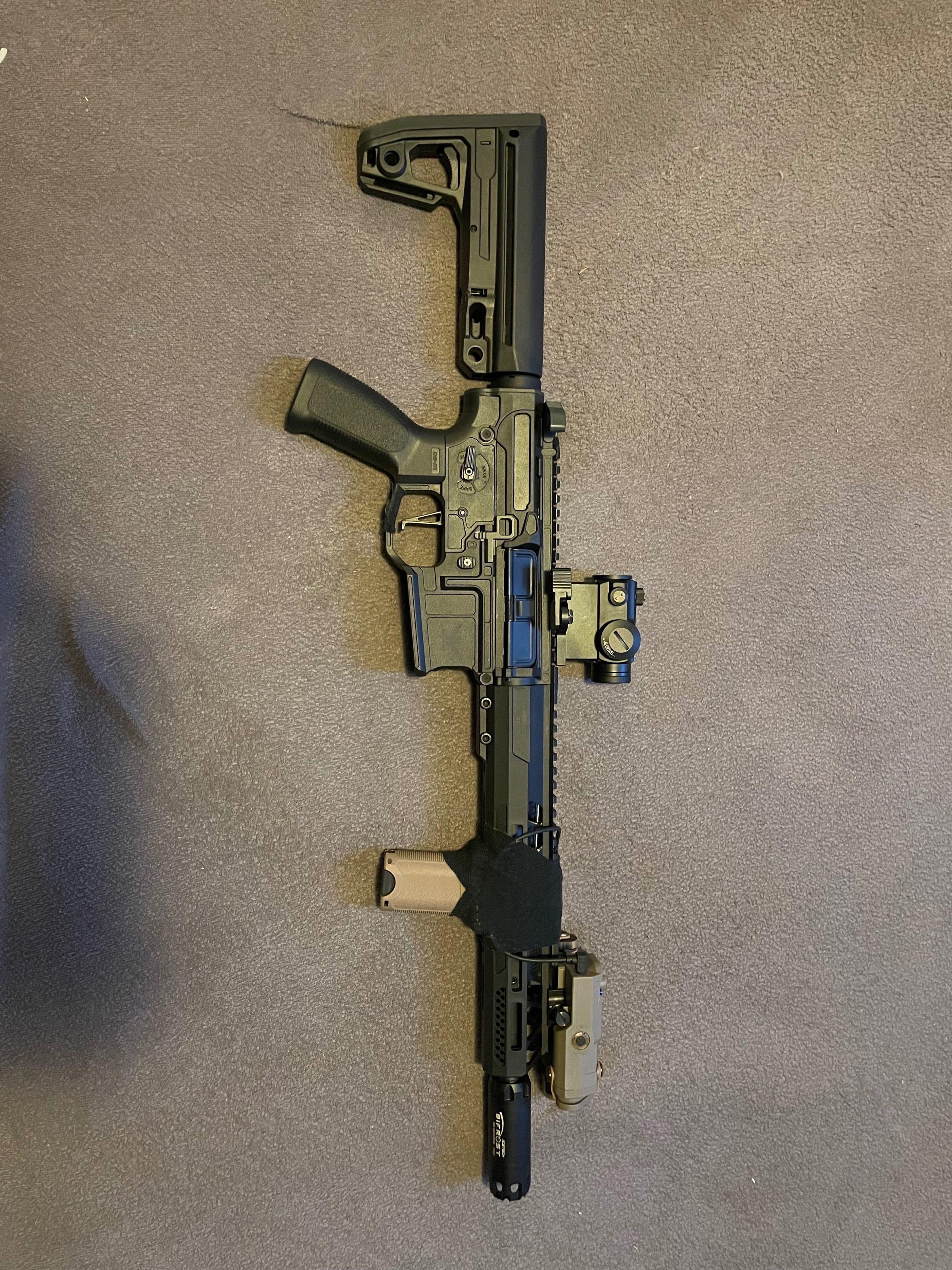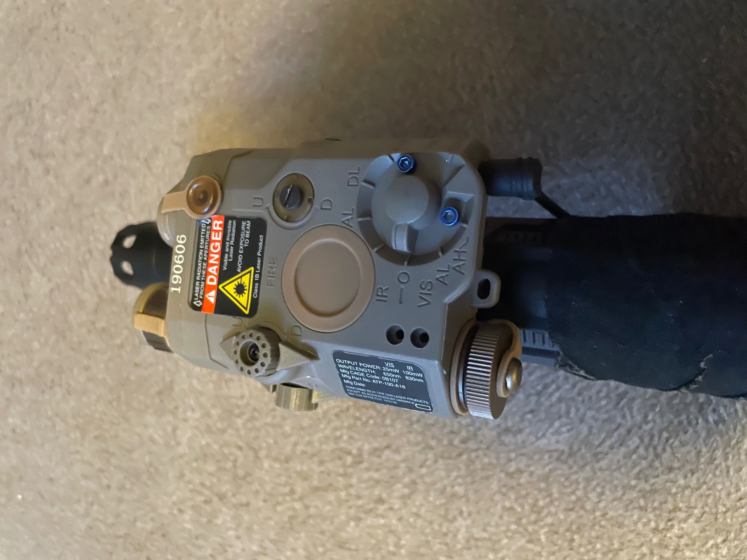 • Tan kleurige peq box (rode lazer, infrarood laser & fel wit licht) met pressure switch.