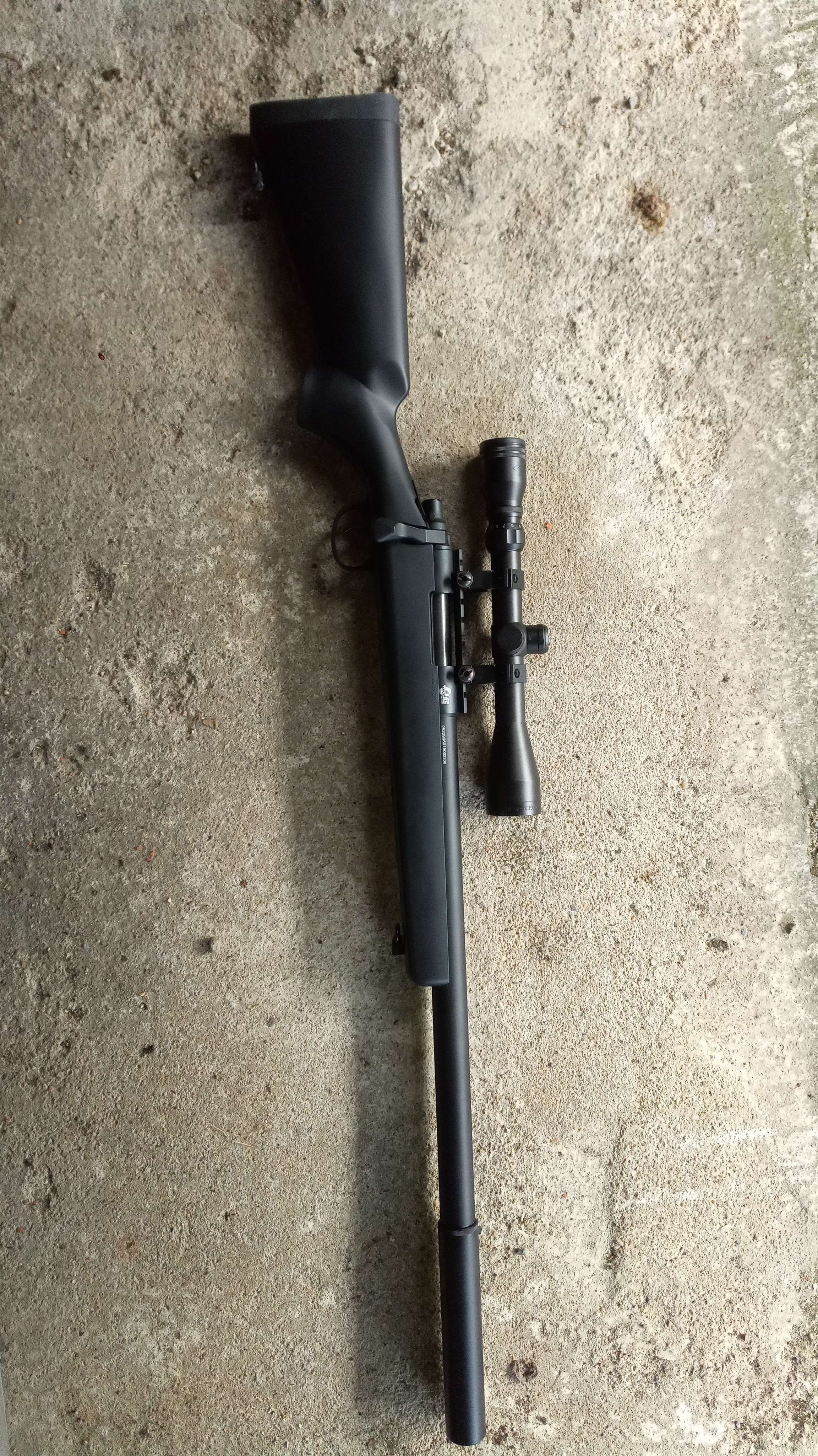 La lunette qu'on voit sur la photo est une gamo 3-9x40 WR de bonne qualité et réglable très facilement d'une valeur de 110€ neuve.
