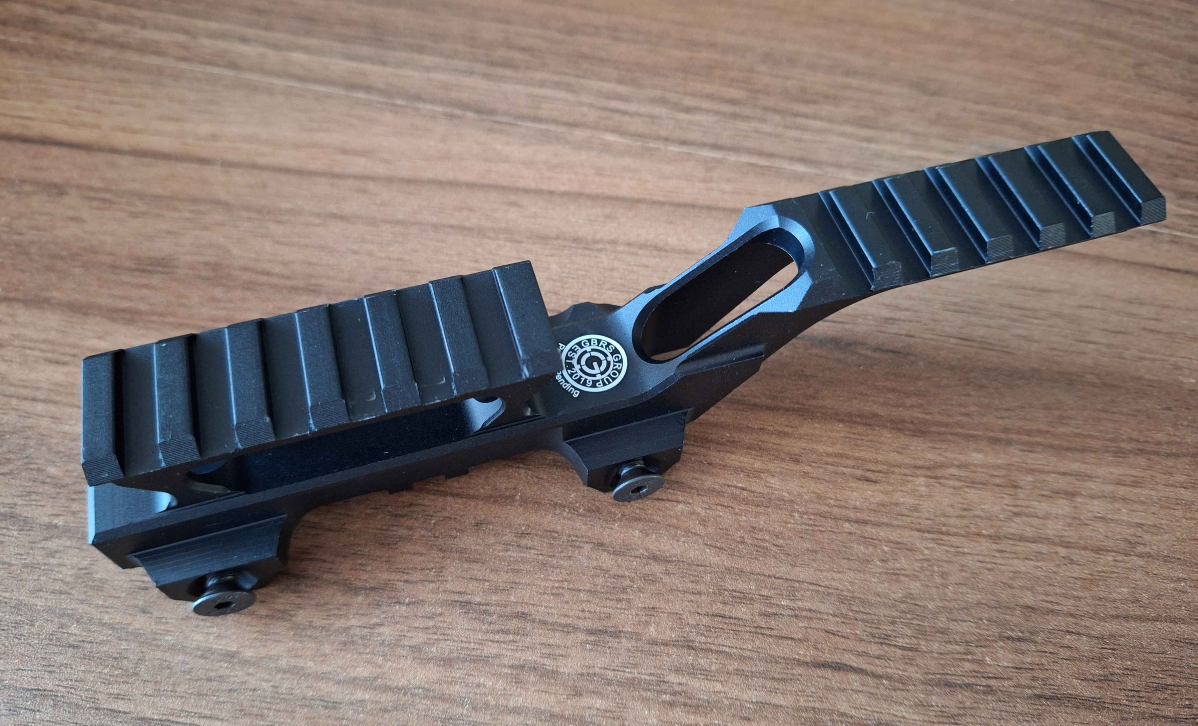Bij deze een GBRS Group Hydra Mount (replica) aangeboden, inclusief het originele GBRS-logo. Deze mount is ideaal voor airsofters die met een volledig masker of grotere gehoorbescherming spelen. Door de verhoogde mount heb je een veel natuurlijkere houding (heads-up) en vind je je aim sneller (fast target acquisition). Mount is gemaakt van aluminium en dus stevig en zal niet zomaar stuk gaan.