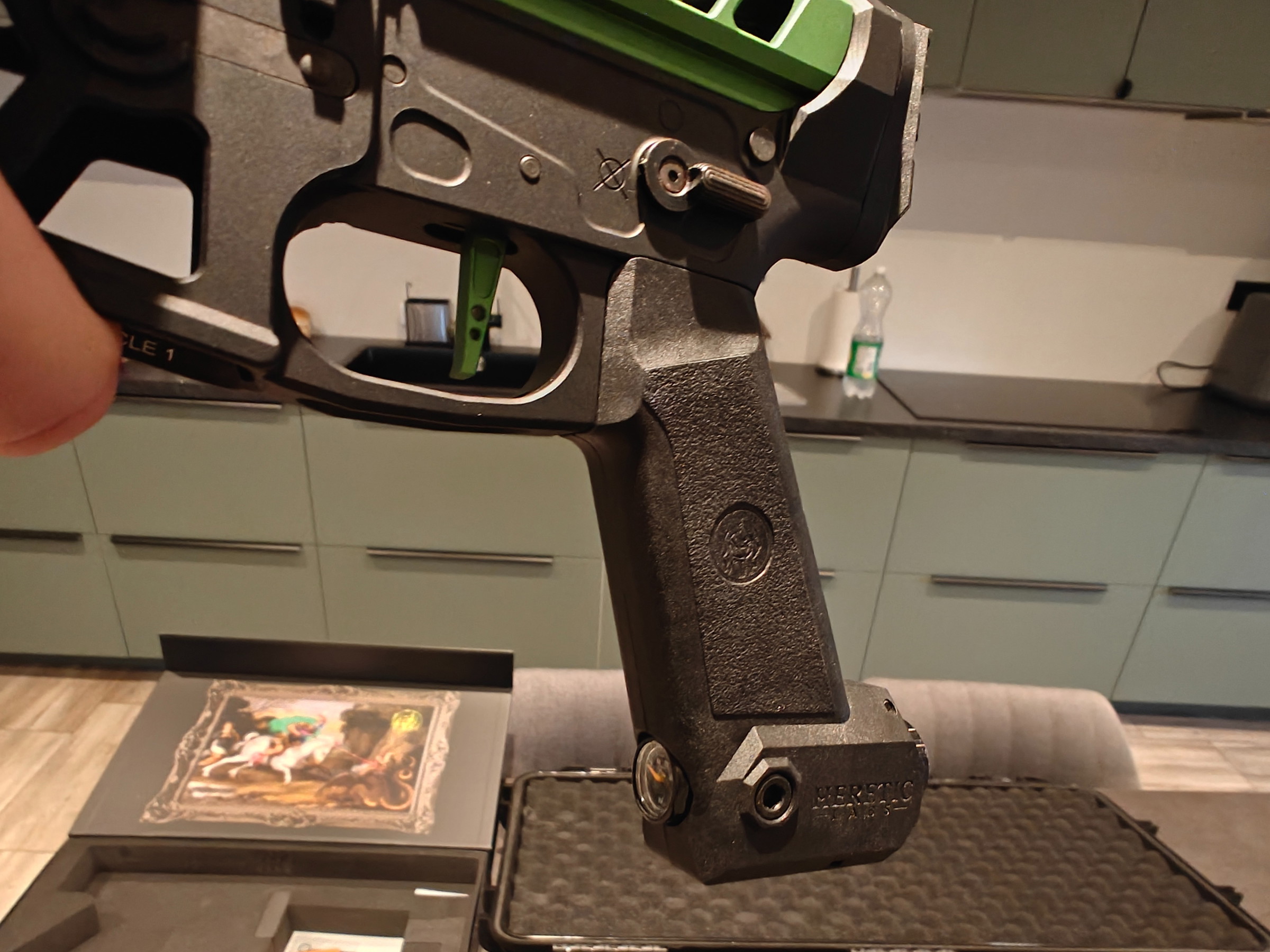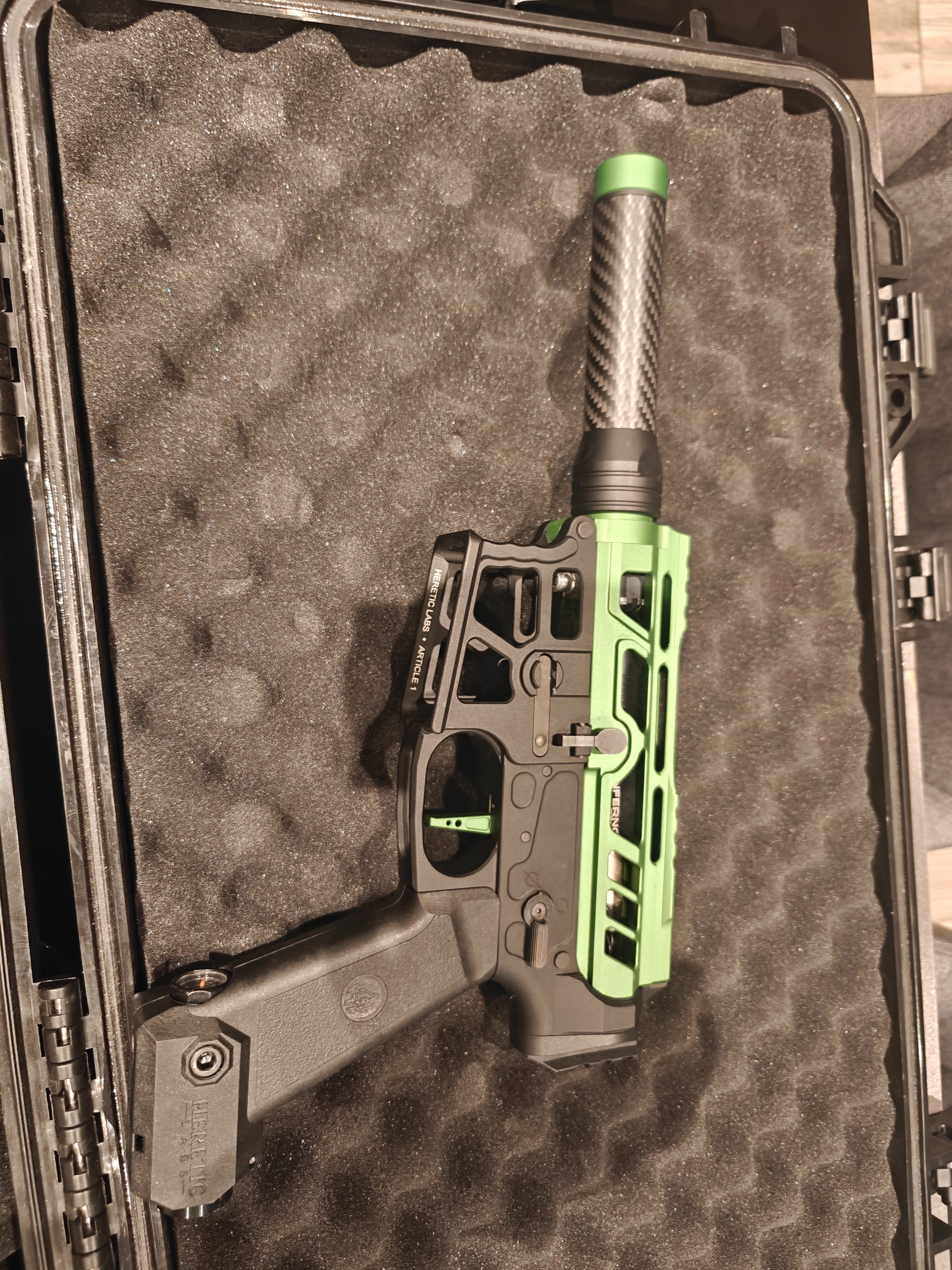 Omgebouwd met een officiele tankgrip erop van heretic zelf(voor te spelen met carbon fles rechtstreeks op de gun).