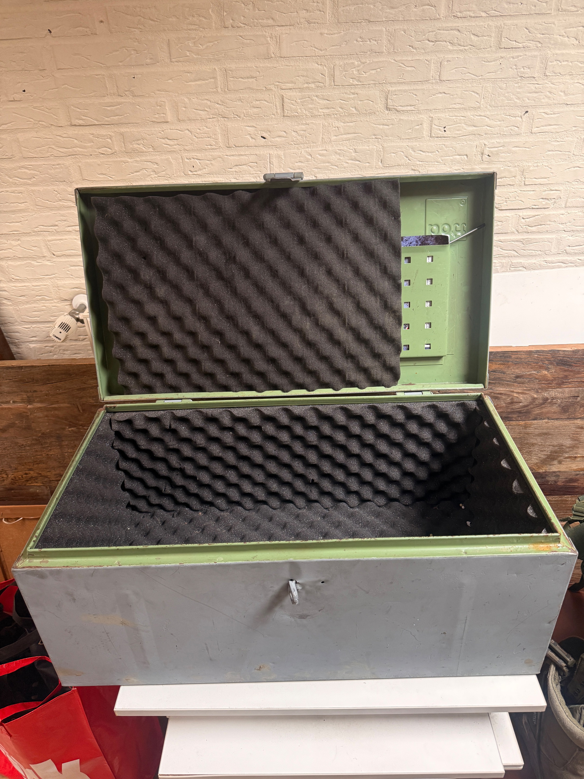 Der zitten allemaal mooie benodigdheden bij zoals :spullen voor onderhoud, een mooie opberg kist van staal met slot, opberg tassen voor de replica’s, magazijnen ,red dot, flaslight, magazijnen, fps meter, oplaadstation, nieuwe helm, nieuwe brillen en ga zo maar door! Bij vragen kan je meer foto’s krijgen!