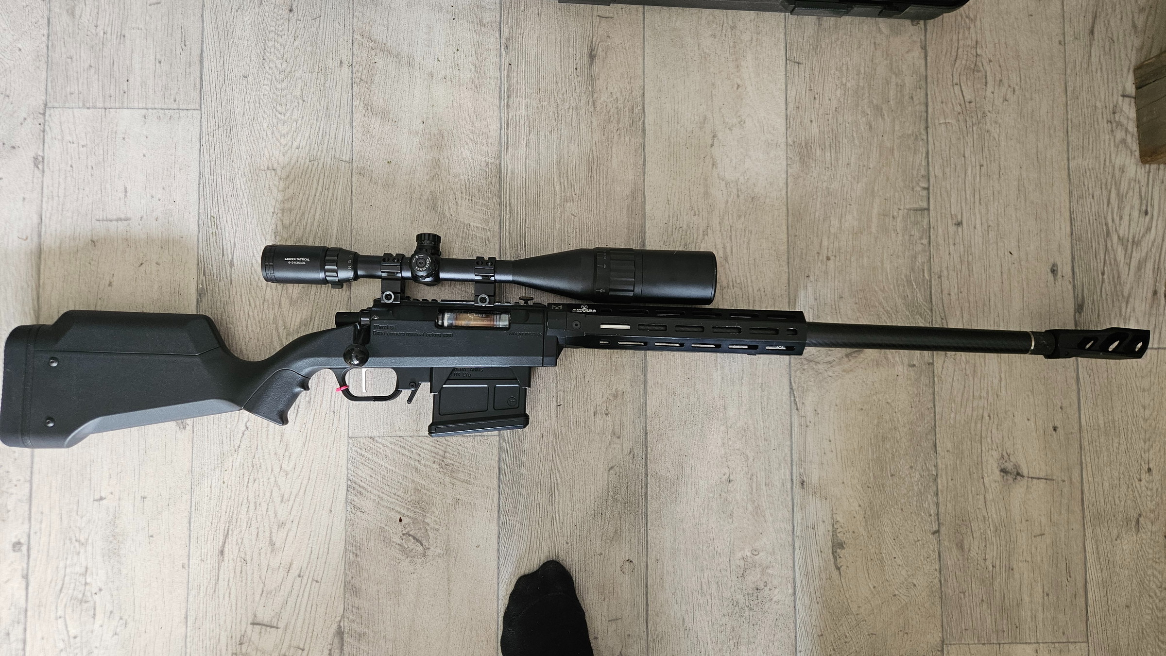 De sniper staat gezeroed op 40m en schiet pinpoint accurate. Schiet met gemak een stuk verder net zo accuraat :).