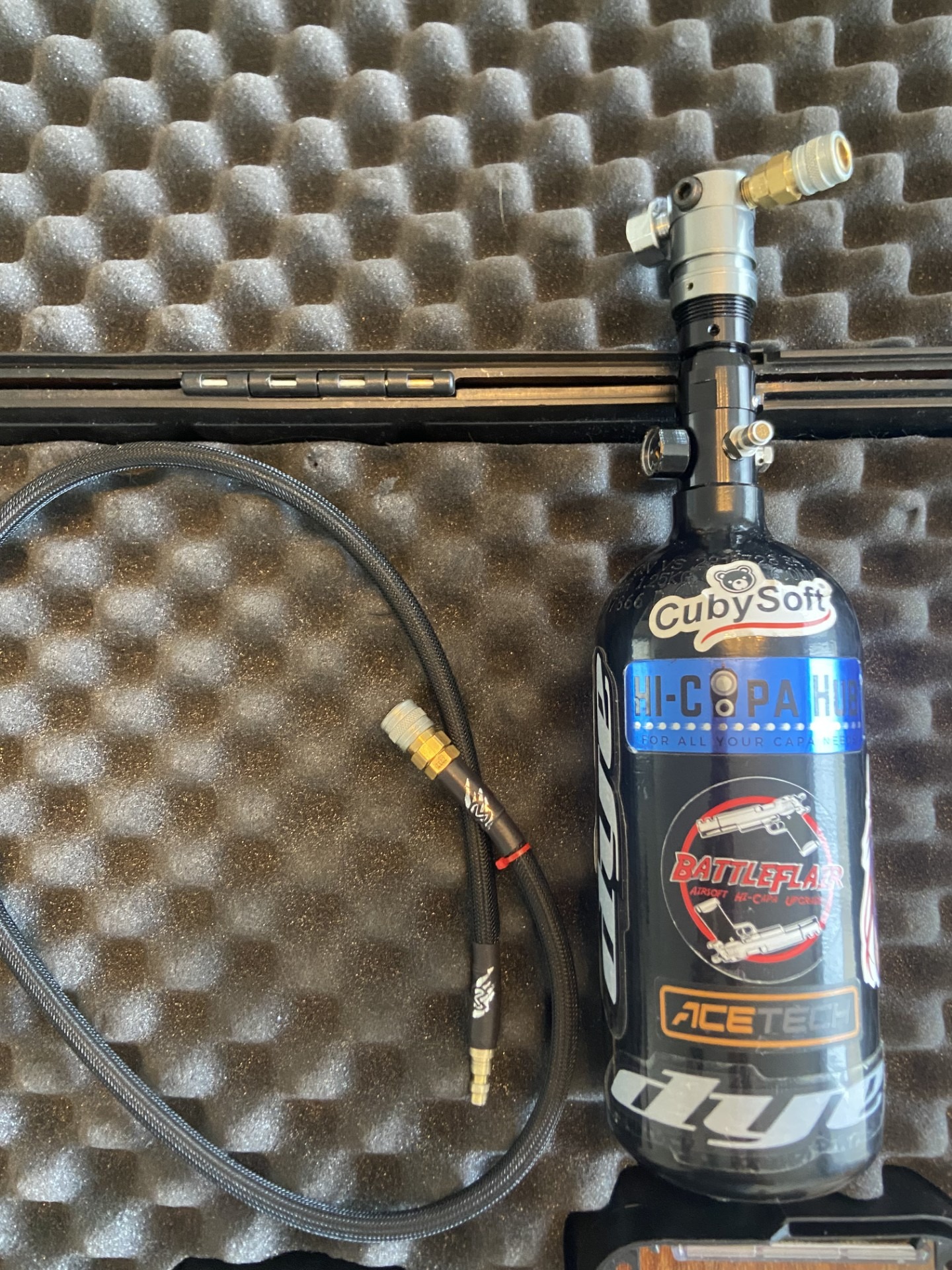 Te koop: een volledig HPA-ready Tokyo Marui Hi-Capa setup, ideaal voor speedsoft of indoor gameplay. De set is uitstekend onderhouden, zeer responsief en voorzien van hoogwaardige accessoires.