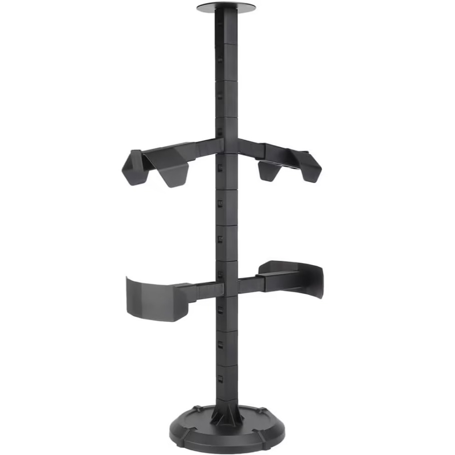 Deze displaystandaard is vervaardigd uit nylon met 35% vezelversterking voor extra stevigheid. Met een gewicht van 1,9 kg en afmetingen van 45,2 x 26,2 x 90,4 cm biedt de standaard voldoende stabiliteit voor verschillende types uitrusting. De modulaire opbouw maakt snelle montage en demontage mogelijk, terwijl de verstelbare hoofdzuil aanpassing in hoogte toelaat. De vier sleuven in de steunplaten zorgen voor eenvoudige configuratie naar persoonlijke voorkeur.