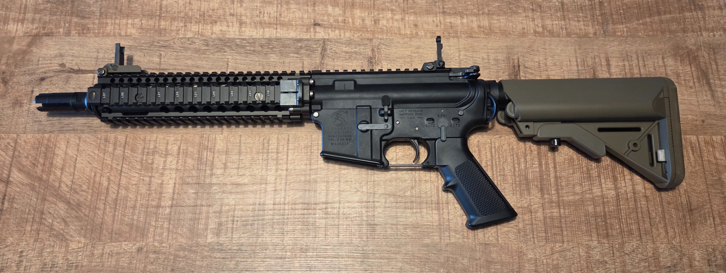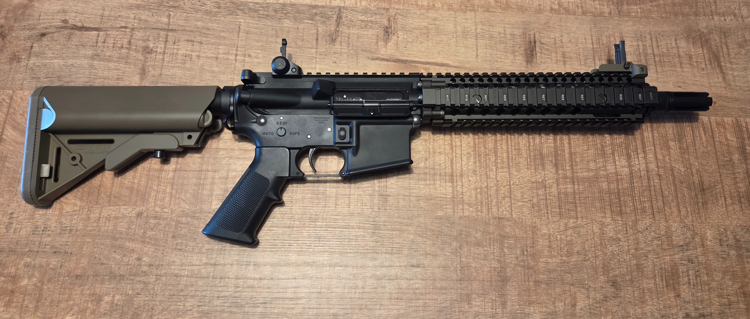 De Tokyo Marui MWS. De replica is het Mk18 MOD 1 model van volledig metaal met een Cerakote coating en gelicenseerd door Daniel Defense. Door het ZET systeem heeft de replica een goede terugslag en is zuinig in het verbuik van gas.