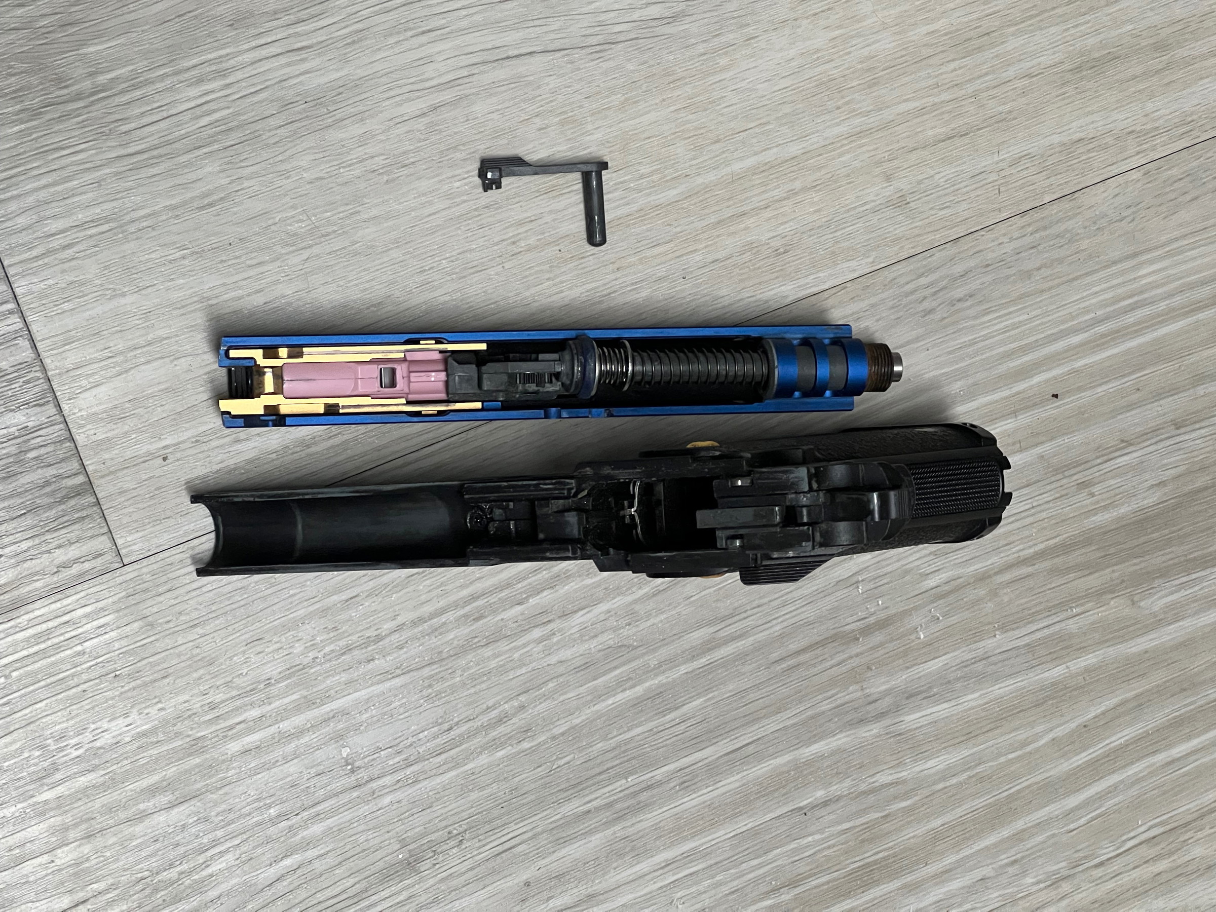 Nice hicapa 4.3, with Alu slide from edge, bbu, nozzle are also upgraded to edge. Hopup and barrel are maple leaf. Outer barrel is CTI (plastic)