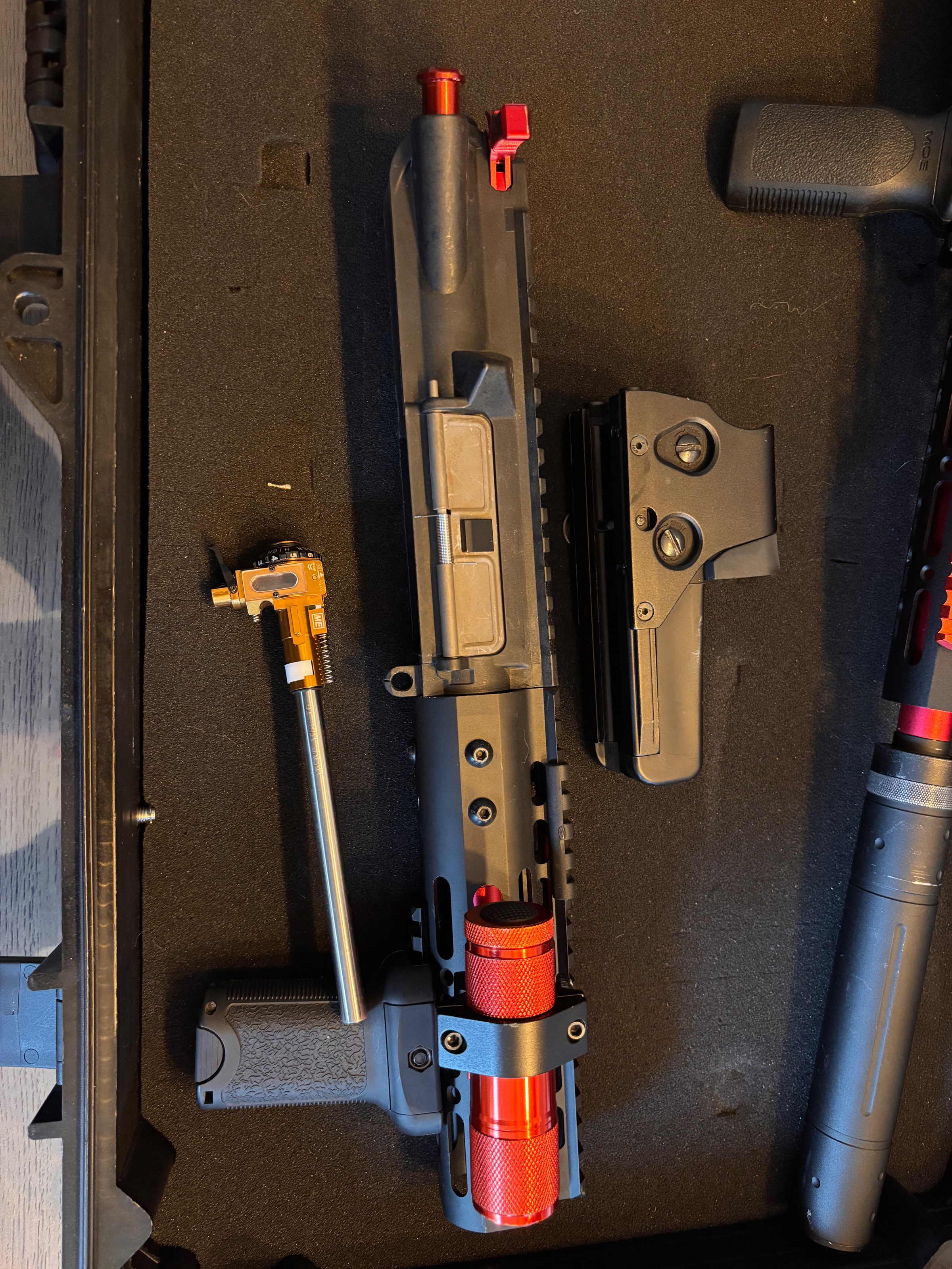 Hierbij verkoop ik de HPA replica van mijn broer. Gezien de replica niet meer gebruikt wordt mag deze naar een nieuwe eigenaar. Zoals je op de foto kan zien krijg je bij deze replica een cqb upper samen met assault/ DMR upper. Beide hebben enige internals zoals hieronder beschreven.