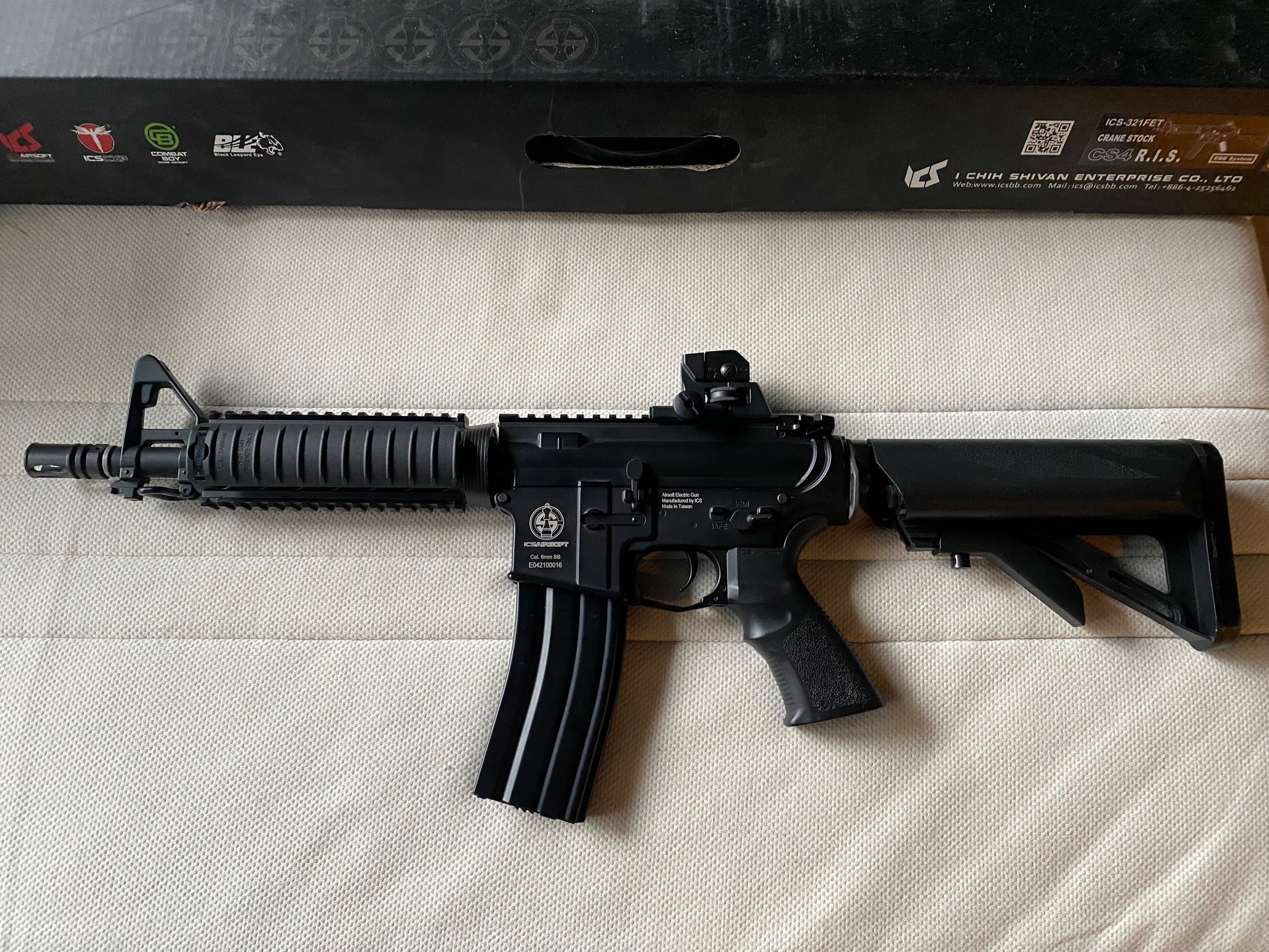 Bij deze super mooie M4 met electric blowback functie aangeboden van ICS. Replica werkt perfect en is zeer weinig gebruikt. Originele magazijn zit erbij, ook zit er een silencer en vertical grip bij. Er is een originele ICS sling mount toegevoegd, alles is verder origineel. Vanwege het split gearbox design is er makkelijk te sleutelen aan deze replica.