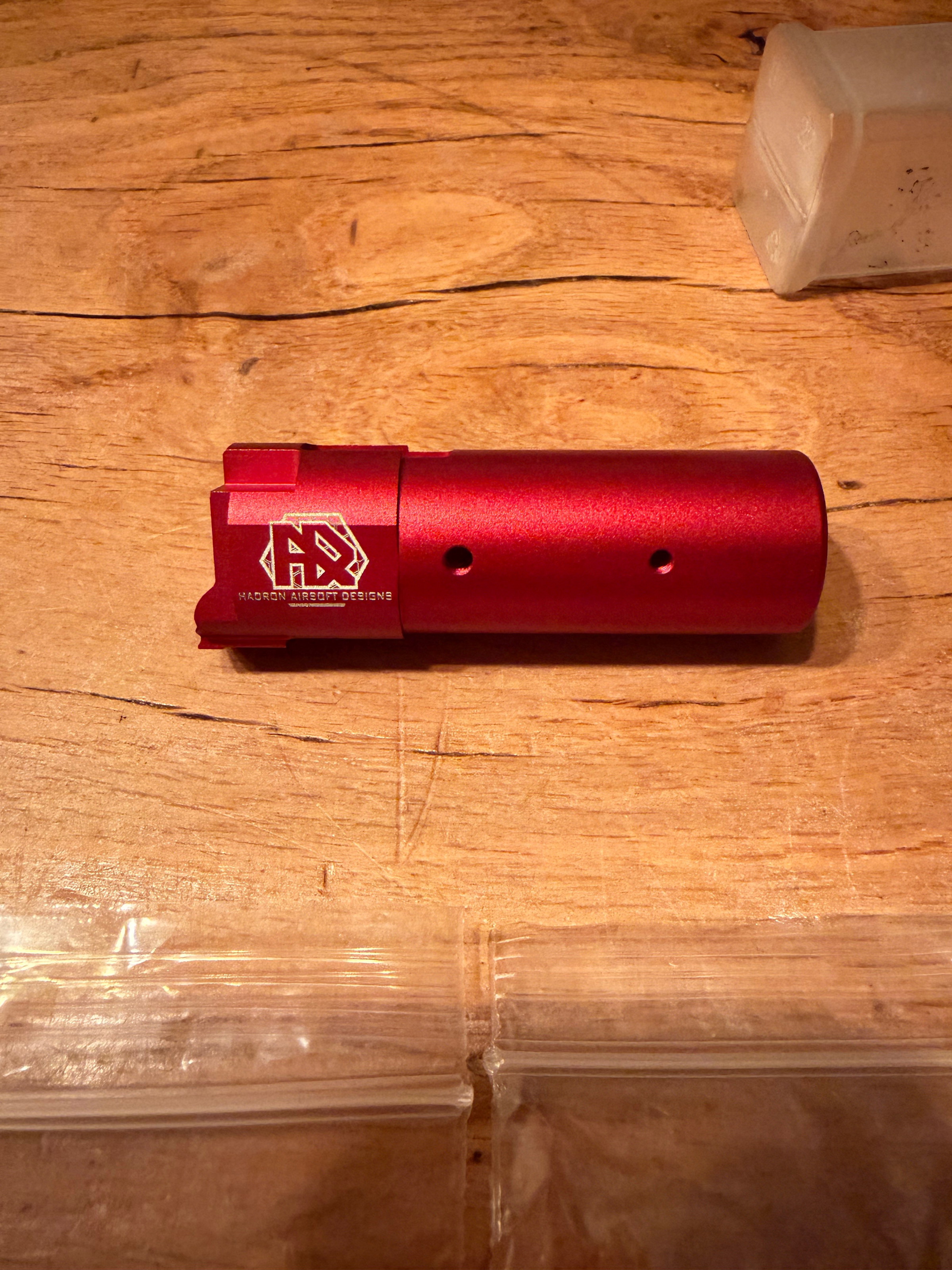 De Hadron Airsoft Designs "Loki" nop is gebaseerd op het geweldige H-Arm V2-profiel, dat nog steeds de koning is van de Mk23 hopplaten. De nob maakt gebruik van RNT (Recessed nub-technologie). We duwen de knobbel vanaf het onderoppervlak, niet van de bovenkant. Dit maakt de nob stabieler en veiliger bij zwaar of licht gebruik. De binnenloop is uitgelijnd door de GBB-bucking en vastgezet door twee nylon getipte schroeven. Draai deze niet te strak aan. De loop en bucking worden van achteren in de hop-eenheid geplaatst, nadat het gat in het bovenwerk is geboord. Controleer altijd op puin van het boren vóór de montage.