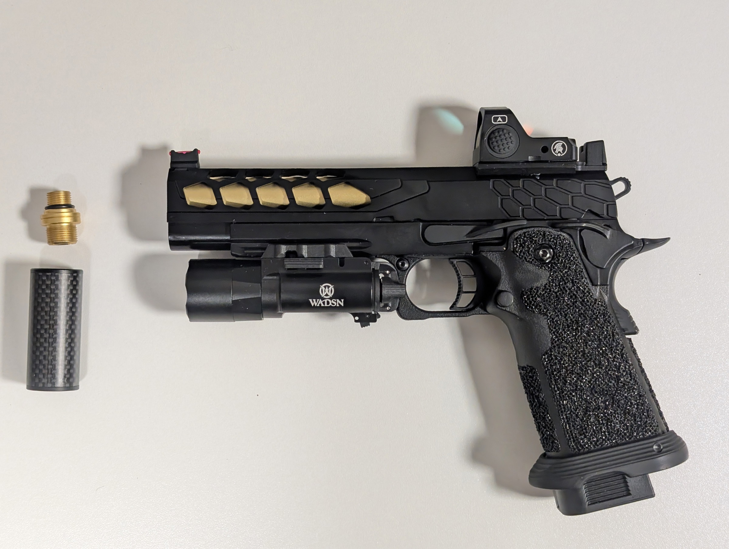 Réplique upgradee avec changement de l'outer barrel pour une version dorée.