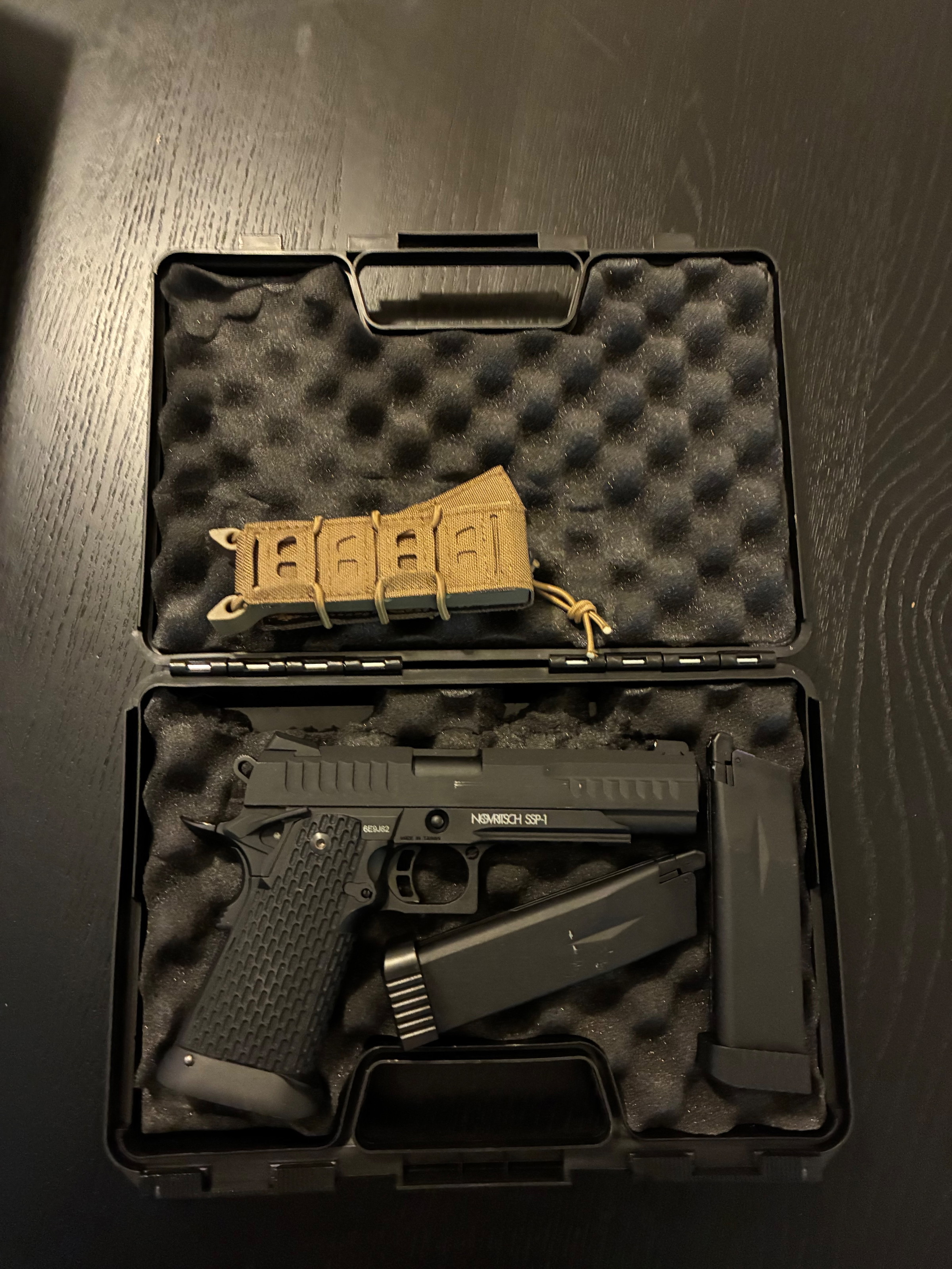 Novritsch SSP1 met 2 gas magazijnen, 1 pouch, novritsch open universel holster en een case.