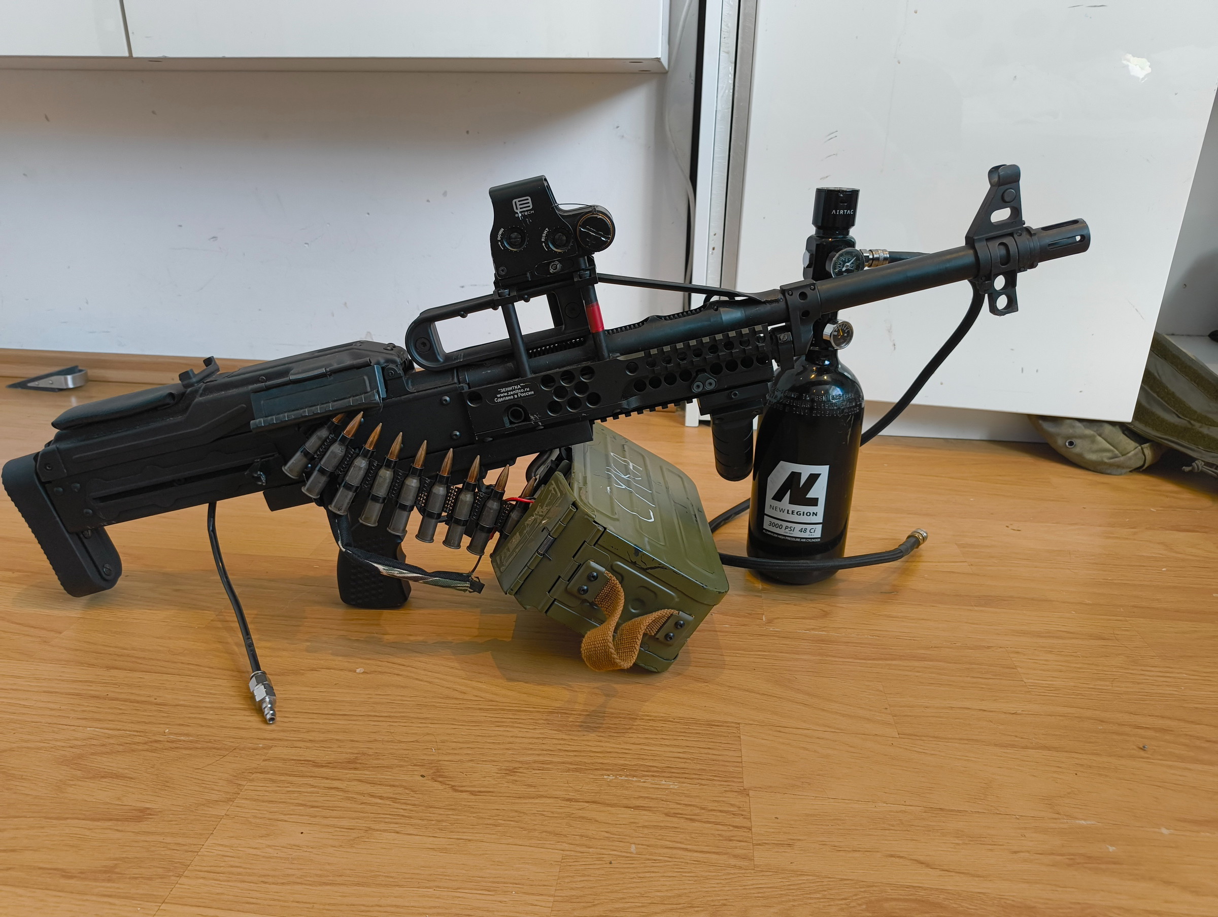 Hello selling my PkP with a Airtac Regulator  and Bottle ! Performance wise absolute insane very high firing Rate and incredible Range. Built in is a Polastar Hpa Engine and a High performance Hop unit. I also have the original AEG gearbox for it if someone prefers AEG . Everything works perfectly fine and iam just getting rid of it because I prefer gbbs more :) The Raptor pkp is limited to only 300~ ever built.