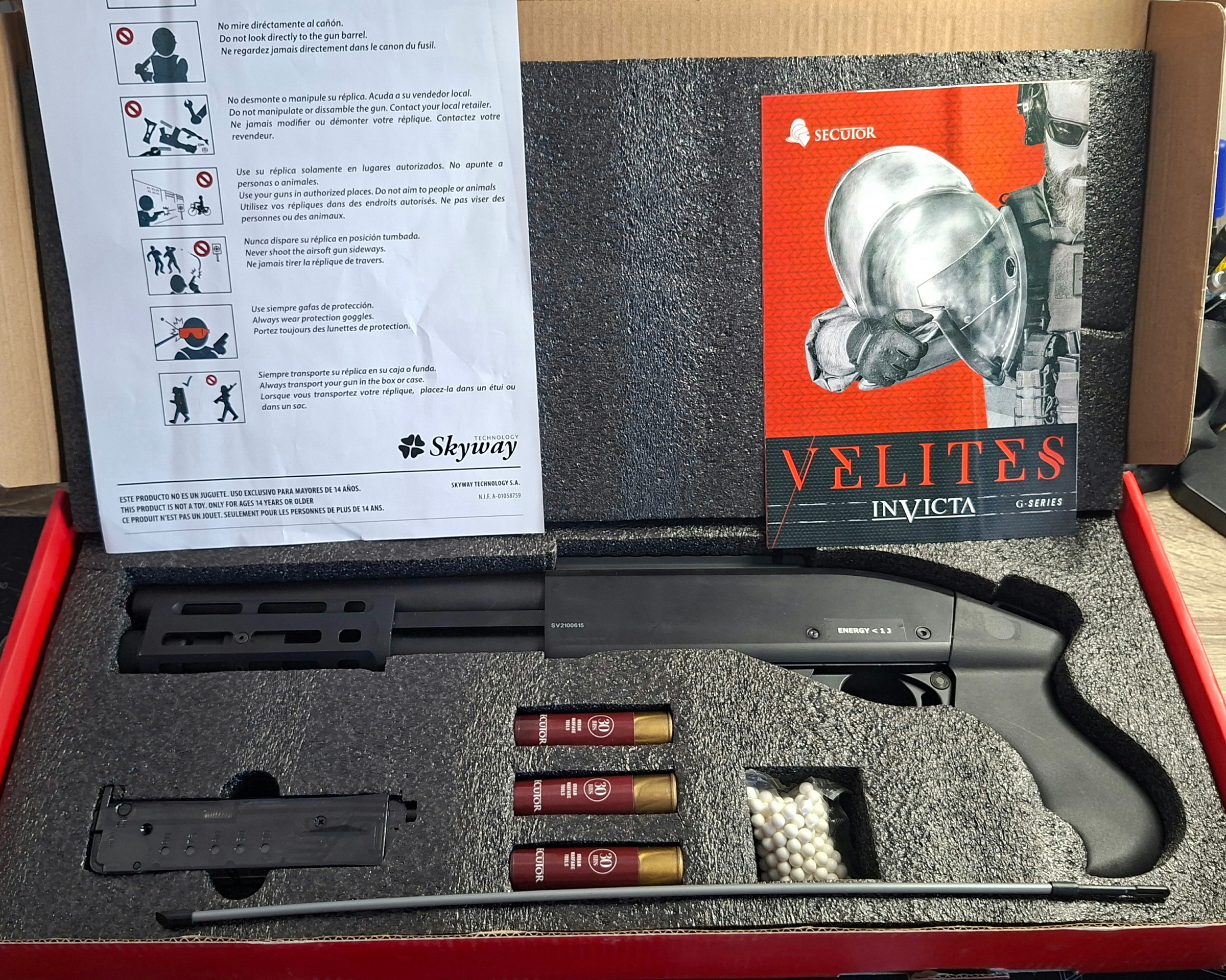 Secutor M870 Velites Invicta in de doos met alle accessoires speedloader en boekjes erbij .