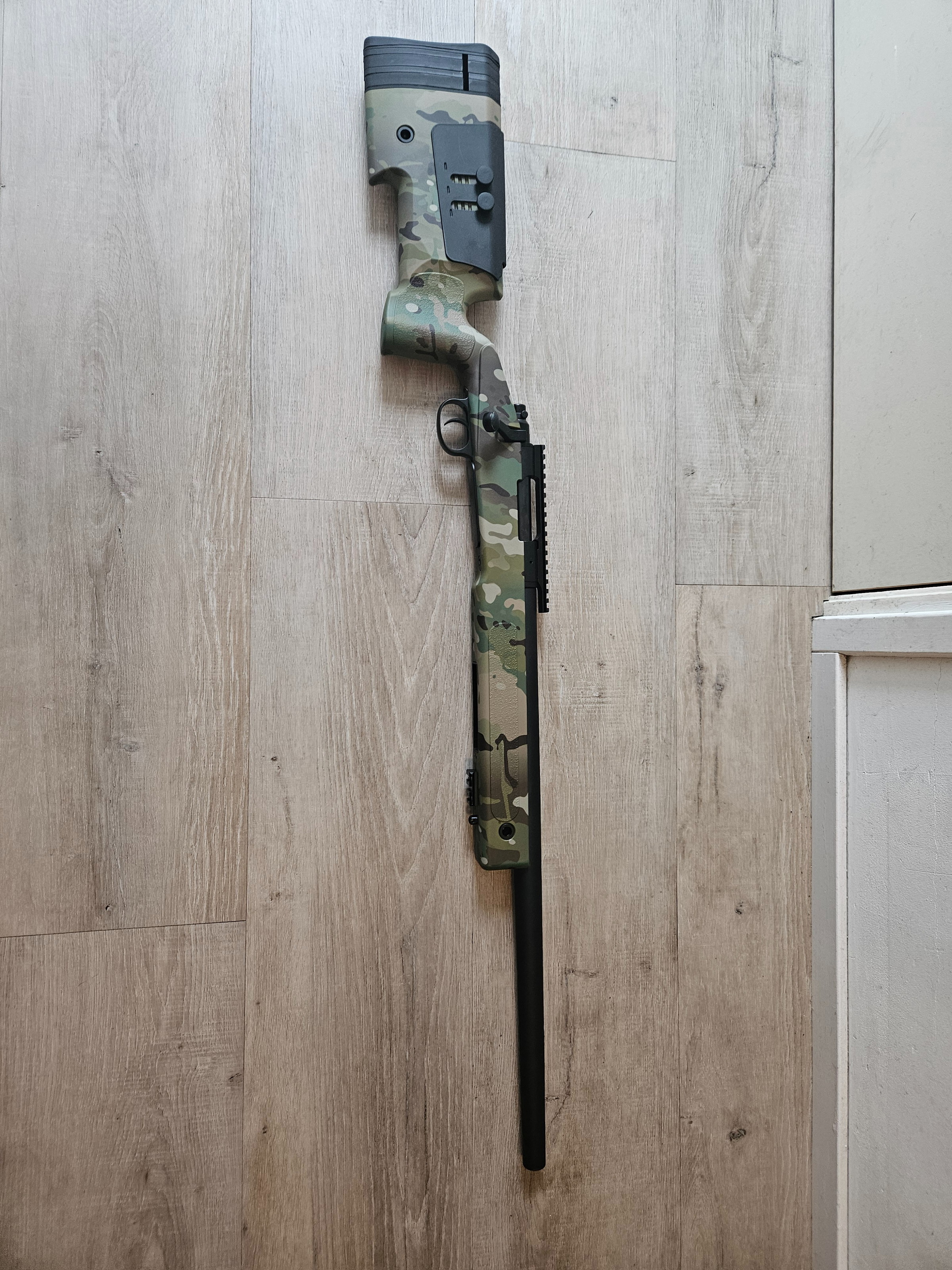 Cyma M870 Shotgun mit Stahl-Klappschaft Long-Type Tri-Barrel Vollmetall Springer 6mm BB schwarz