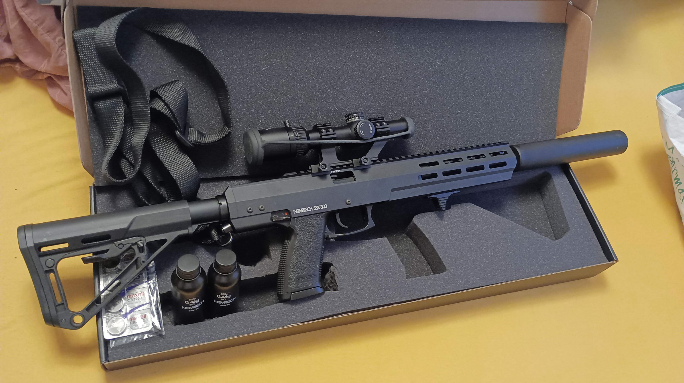 Ich verkaufe meine 1 Mal gespielte SSX303 Stealth sniper DMR von NOVRITSCH mit Zubehör