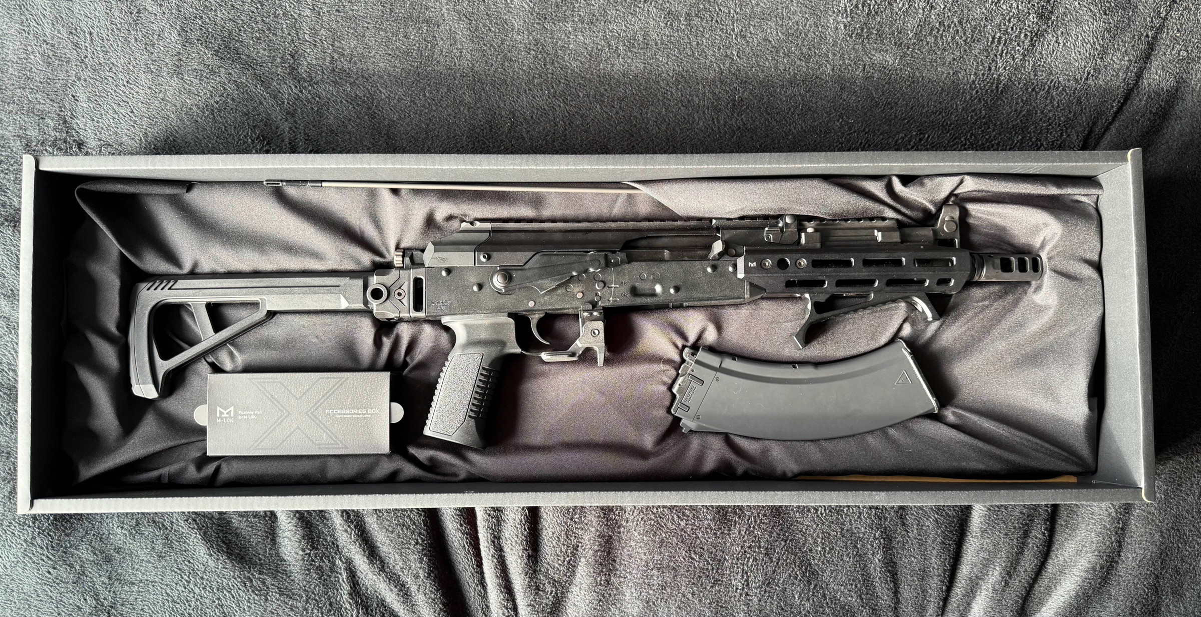 - Alles wat origineel bij de AKX in de doos komt (De AKX uiteraard, AKX magazijn, M-lok rails, speed loader, cleaning/unjamming rod)