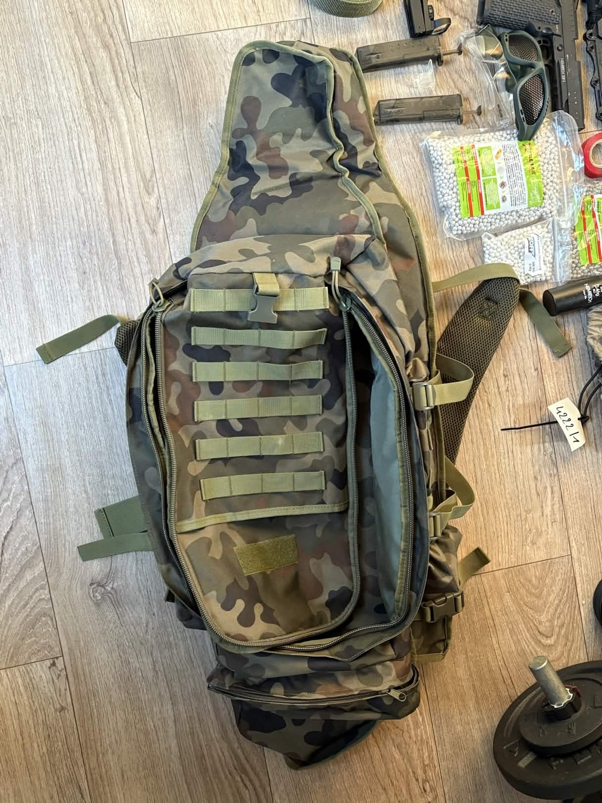 • Chest rig met 3x m4 mag pouches, drinkfles pouch incl drinkfles, grotere algemene pouch