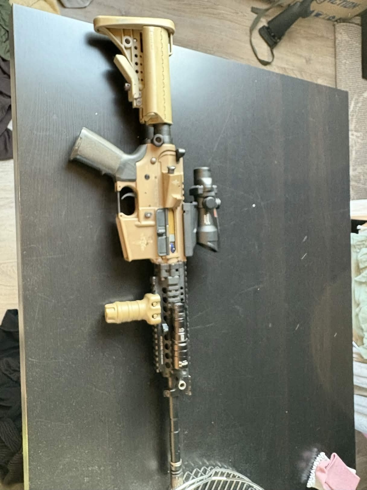 • G&P m4 met front grip, ACOG scope, Gate titan V1 chip (burst fire etc), en kwalitatieve flashlight met strobe functie.