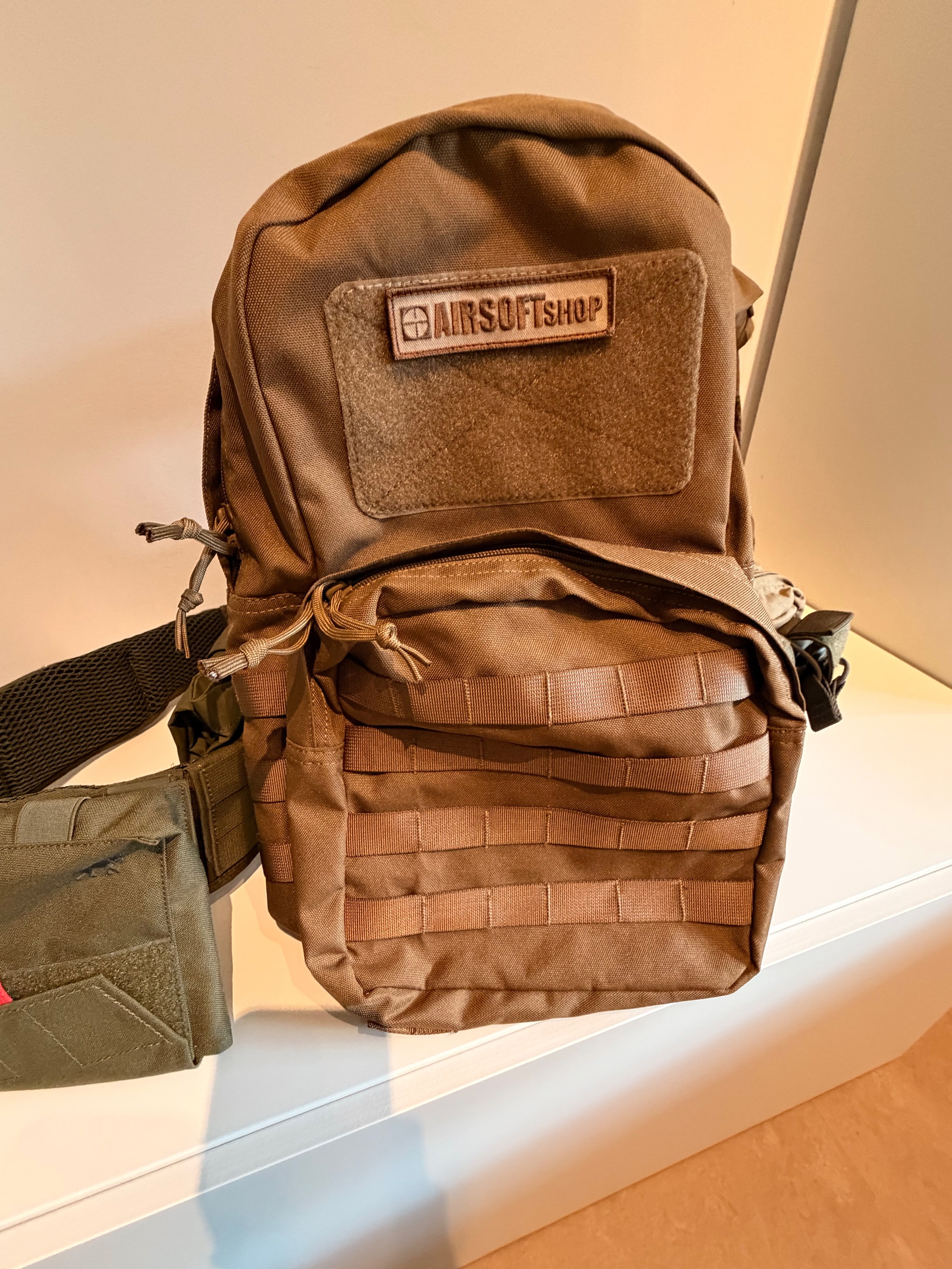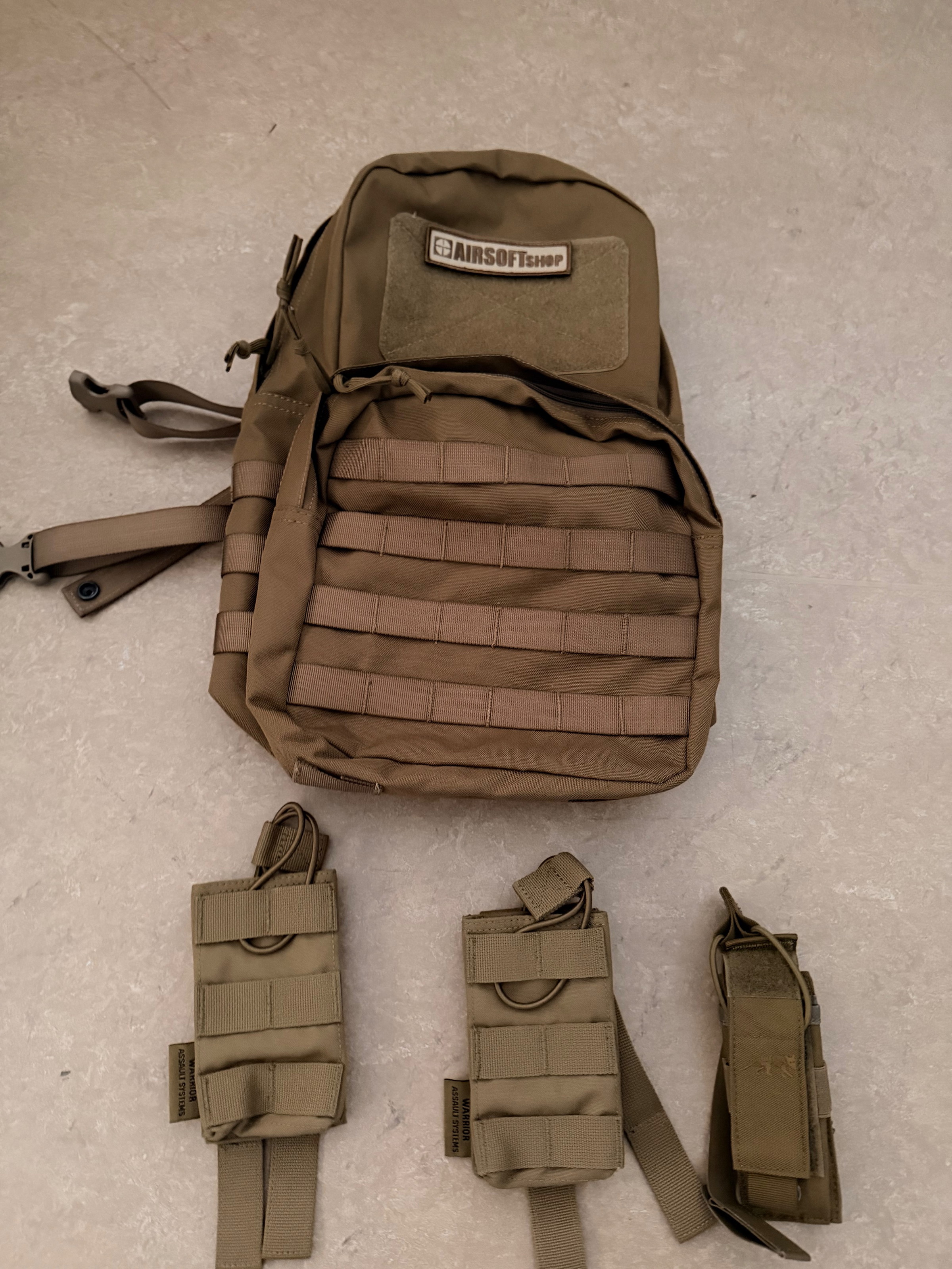 Rugzak met strabs voor op Quick release vest + reserve pouches voor laders — 40 euro