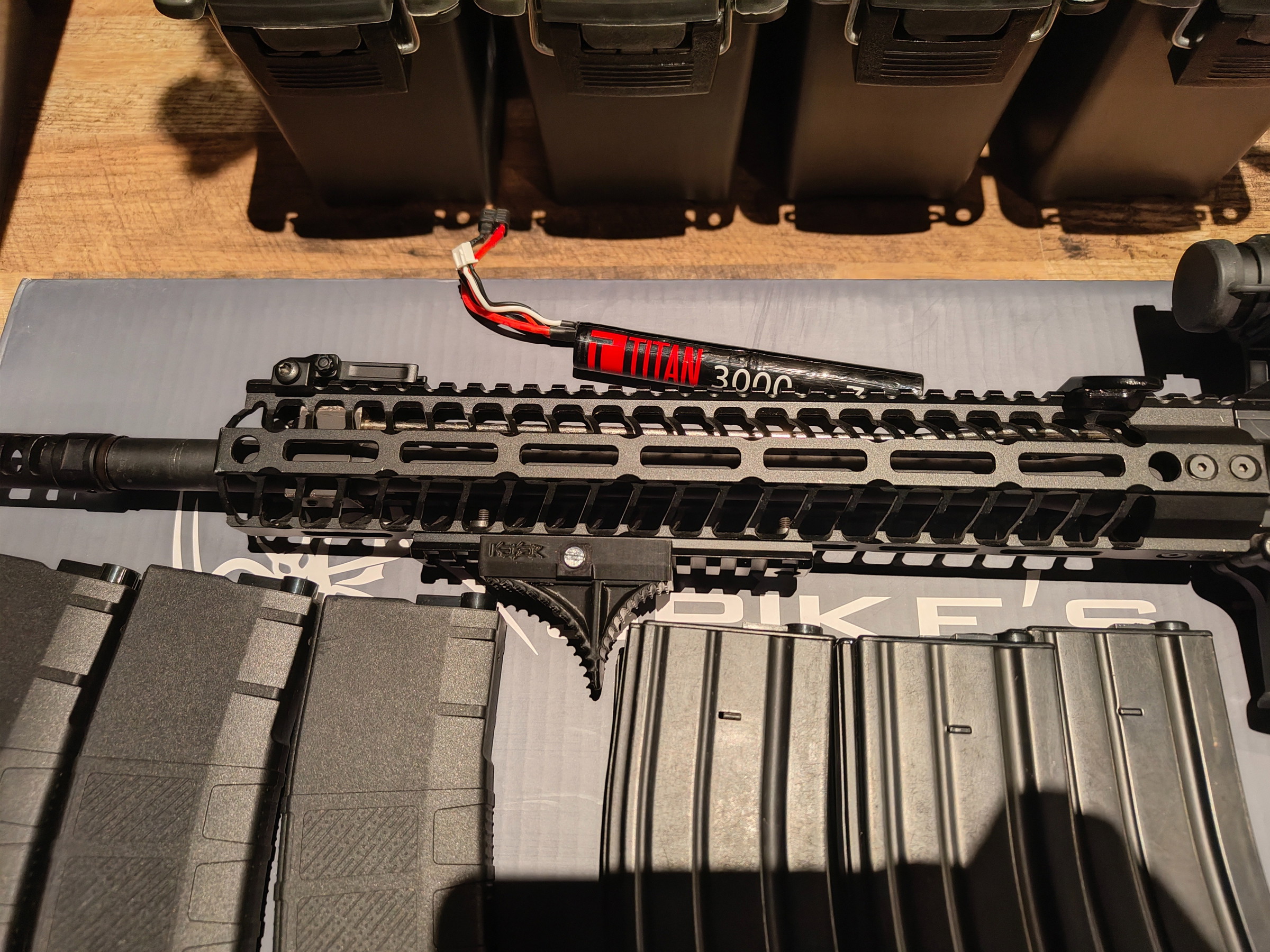 The manufacturer Cyma platinum has already shown, on many occasions the innovations that can be brought to their gearboxes. The CM.092 ST in the new E-EDITION HIGH-SPEED configuration has a velocity of around 390 fps and, in combination with a high power LiPo battery, a ROF of around 25rps. An unical MOSFET in combination with low-resistance wires and a T-connector plug protects all the electrical installation. This was achieved due to the new gearbox parts with increased durability, such as: