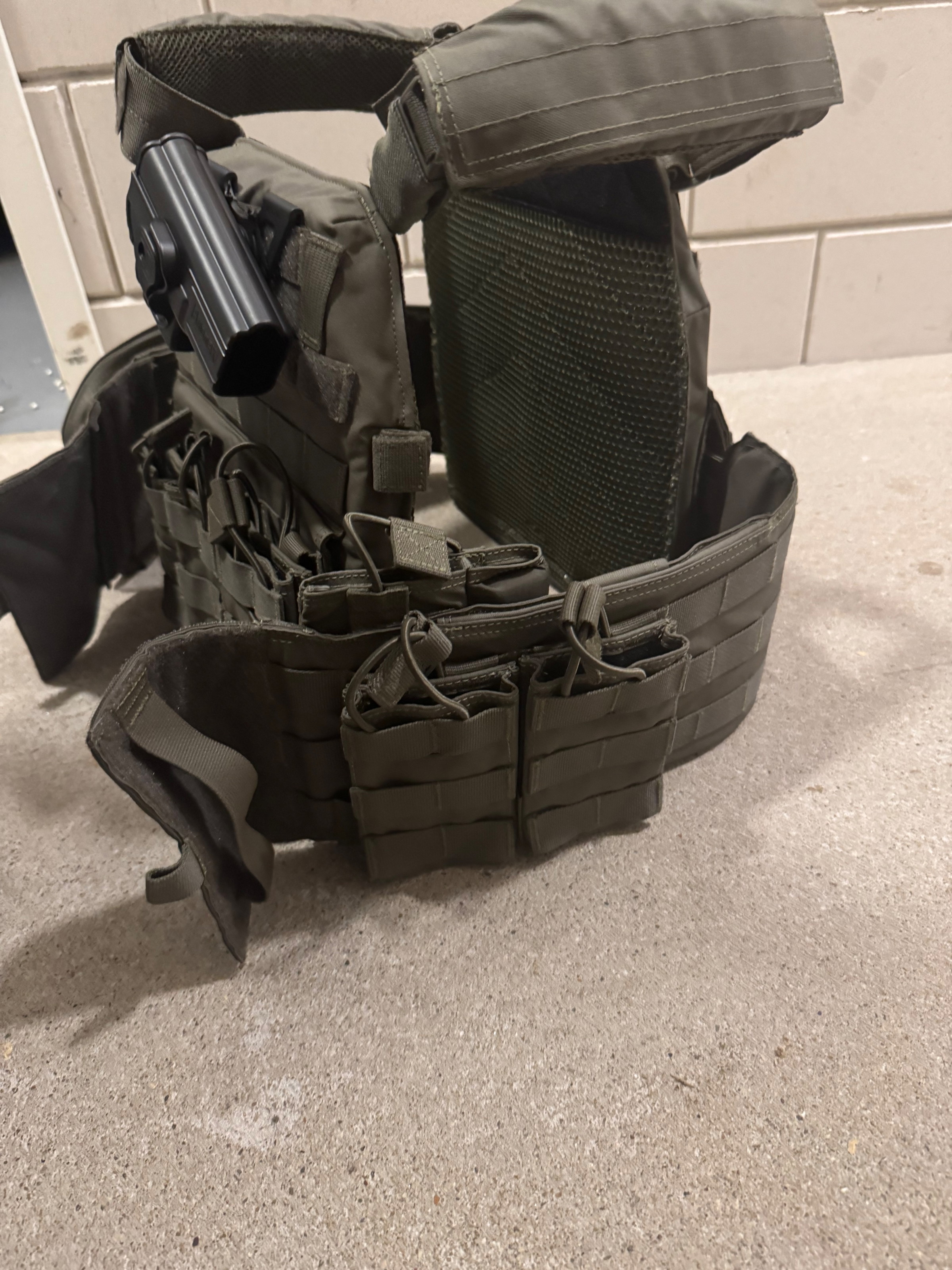 Letterlijk 1 x gedragen voor foto’s . Er zit een Glock holster op die echt top is en veel poches . Goedkoper vindt je niet !