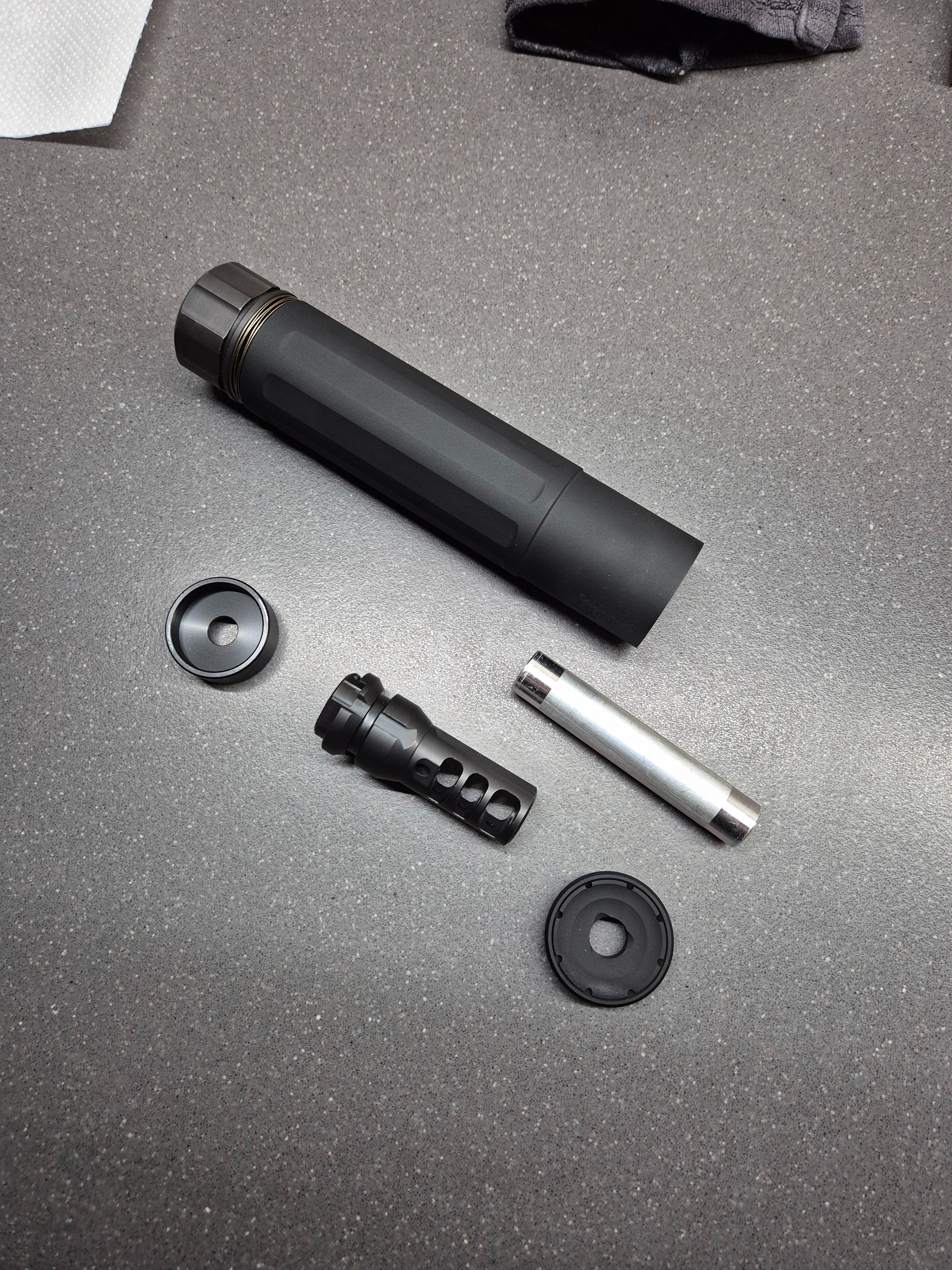 Angrygun sandman-s supressor en flashhider. Nieuw, alleen uit de doos gehaald voor foto's. Betreft 14mm ccw flashhider met quick detach supressor. Er is ruimte voor een tracer unit in de demper. Onder andere bekend door seal team six die dezelfde demper gebruikt.