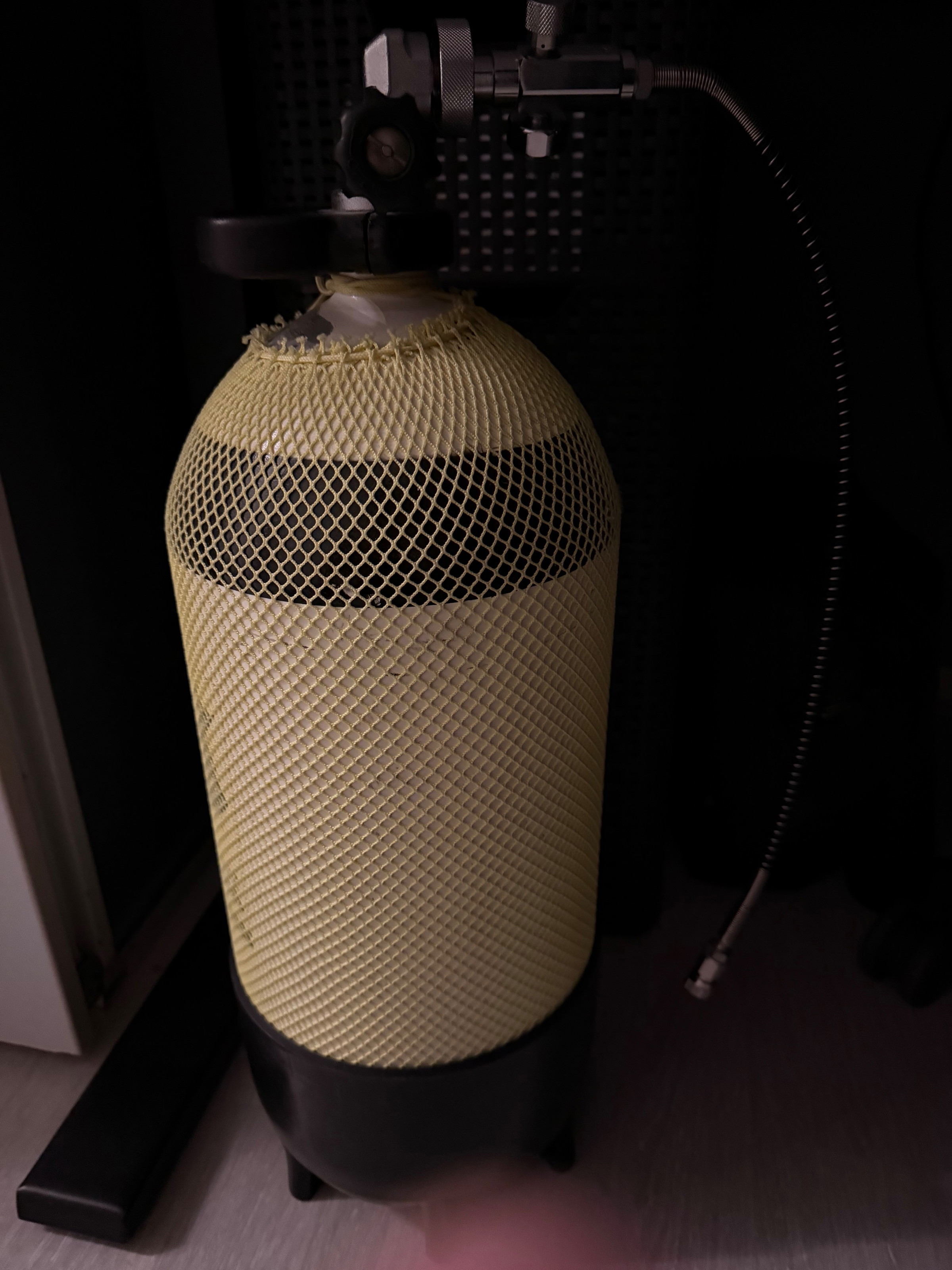 Duikfles 12L - 200bar incl vulstation. Keuring tot 2029. Incl handgreep, netje en voet.Β