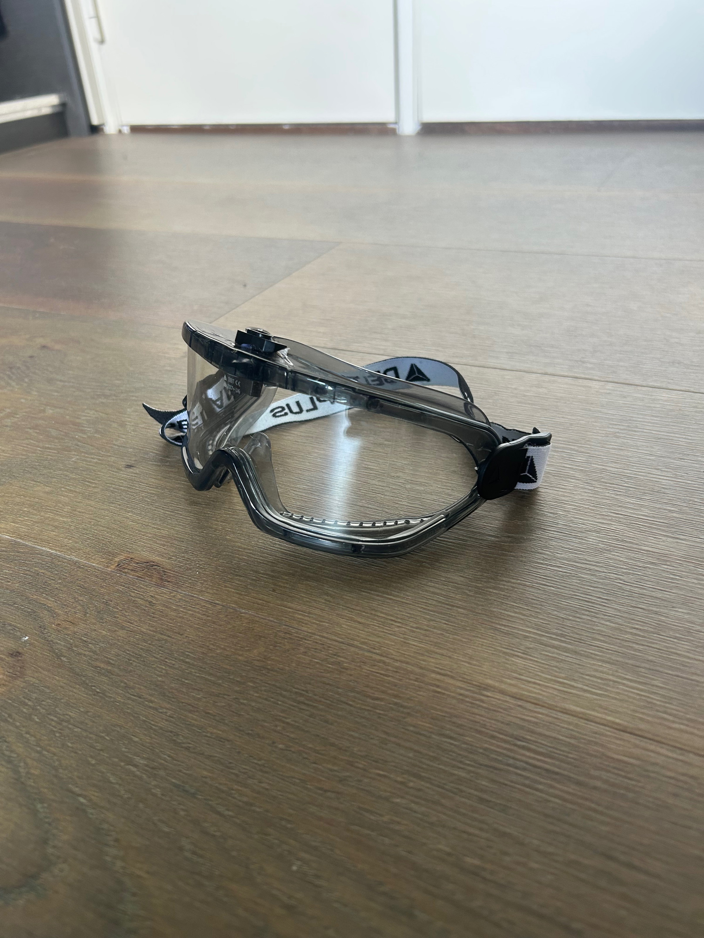 Helm met antifog, bril en helm cover.
