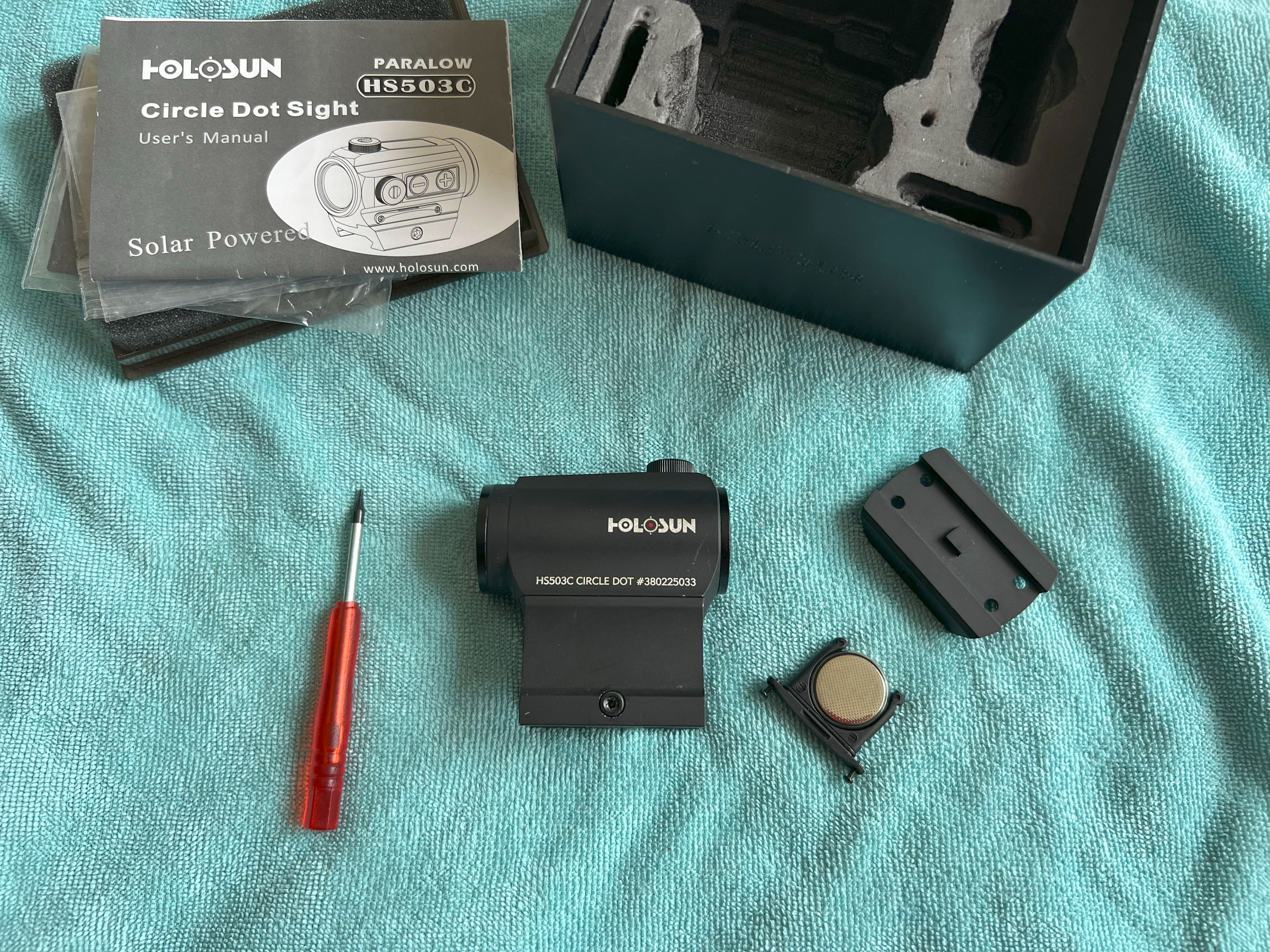 It's basically complete in the original box with both the low and high mounts, spare battery train and a screwdriver to remove the battery tray with.Β