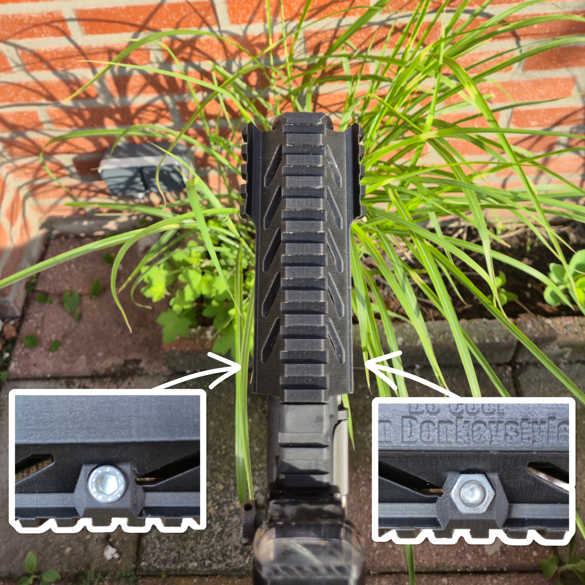Ook vervangt deze handguard de volledige outer barrel want deze zit namelijk al vast ingebouwd in de handguard.