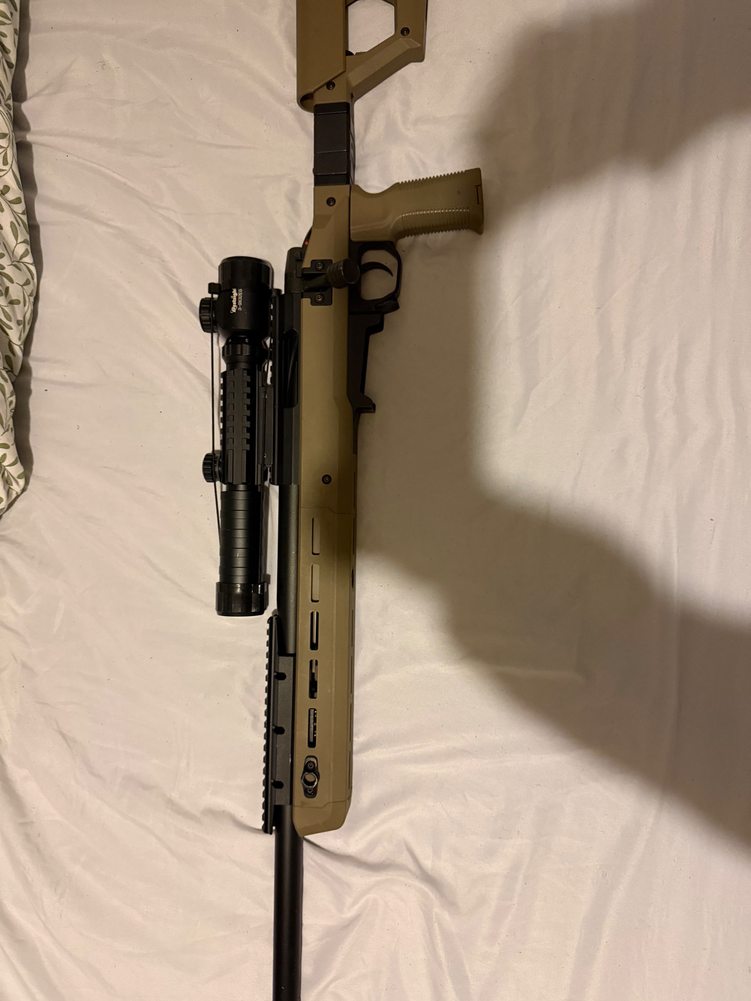 La réplique est équipée de rails Picatinny sur le dessus pour installer la lunette de votre choix, ainsi que d’un garde-main M-LOK pour accessoires.