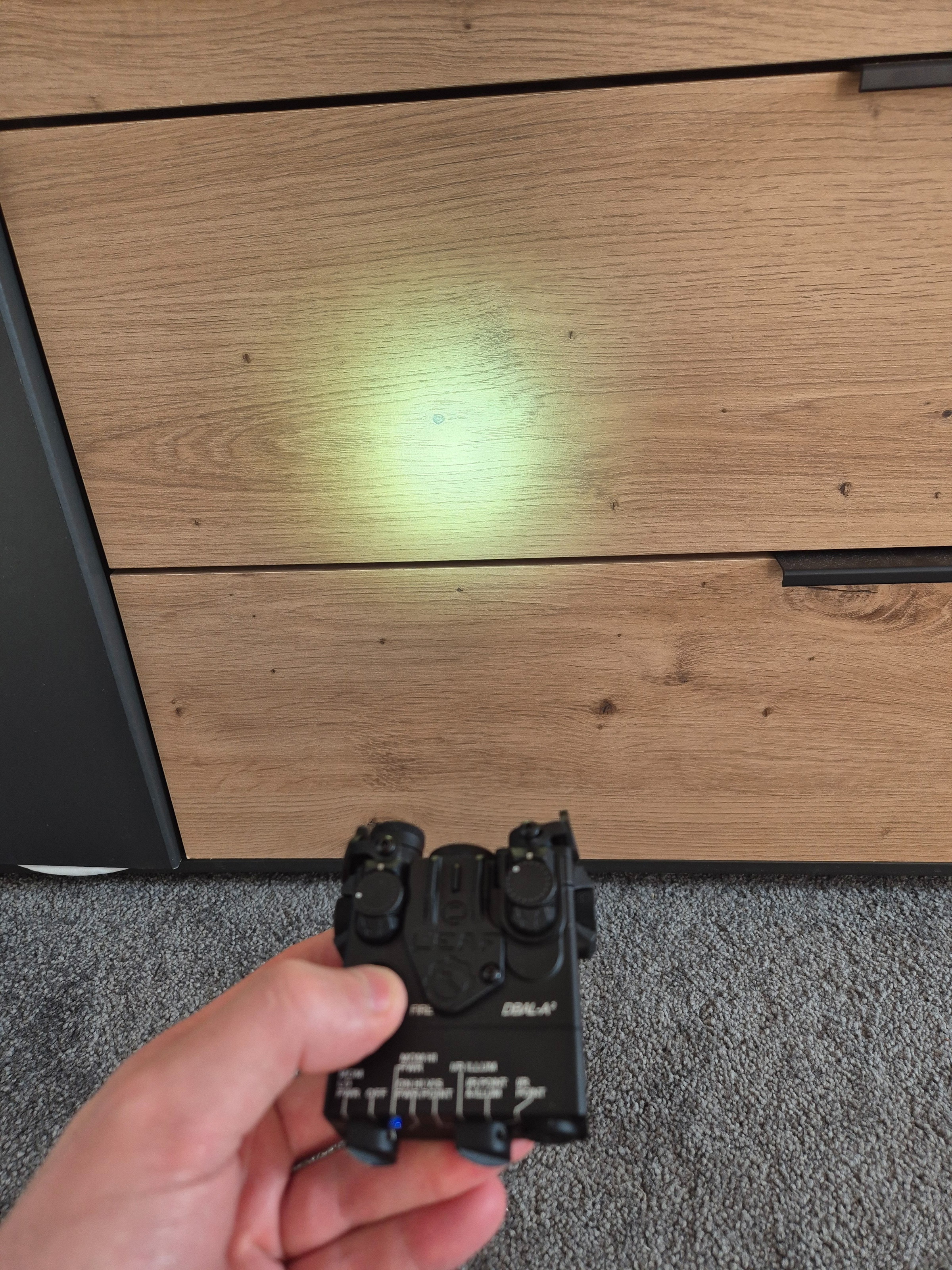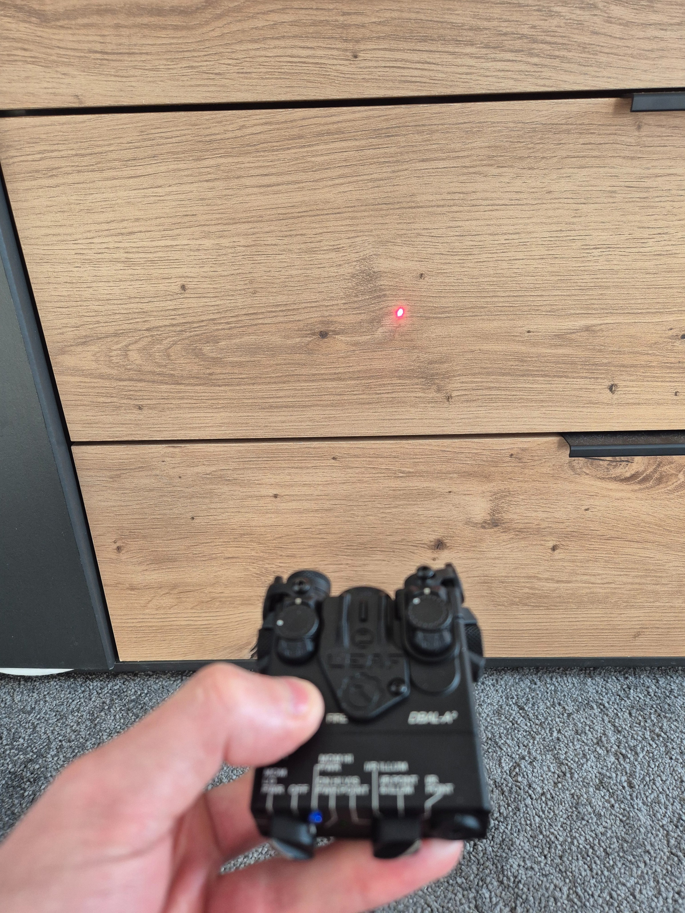 Heeft een metalen behuizing. Absolute nieuwstaat, geen beschadiging en alles werkt. Voorzien van de juiste markeringen en inbegrepen bedienknop. Er zit een scalarworks type LEAF front sight op.