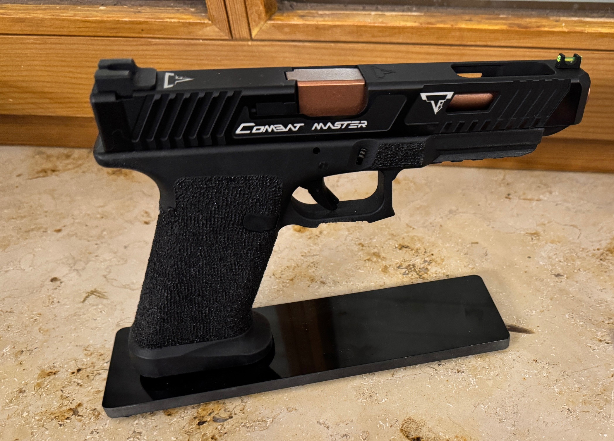 Ein stilvoller Waffenständer für die meisten Novritsch Pistolen und andere Pistolen mit double-stack Magazinen (z.B. HiCapa & Glock Magazine).