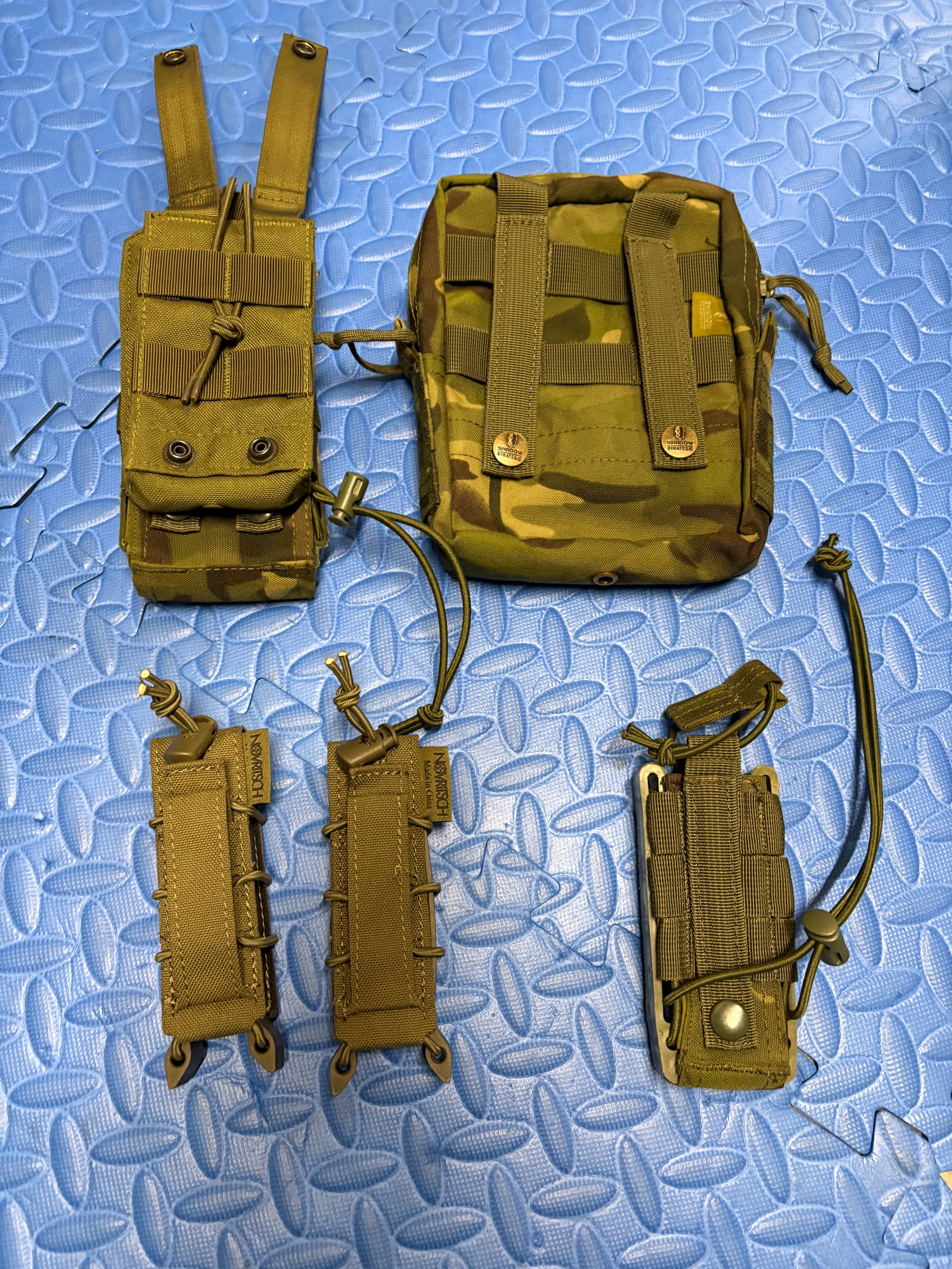 3 pouches pistol mag, 2 pack pouches m4 mag 1 dump pouche