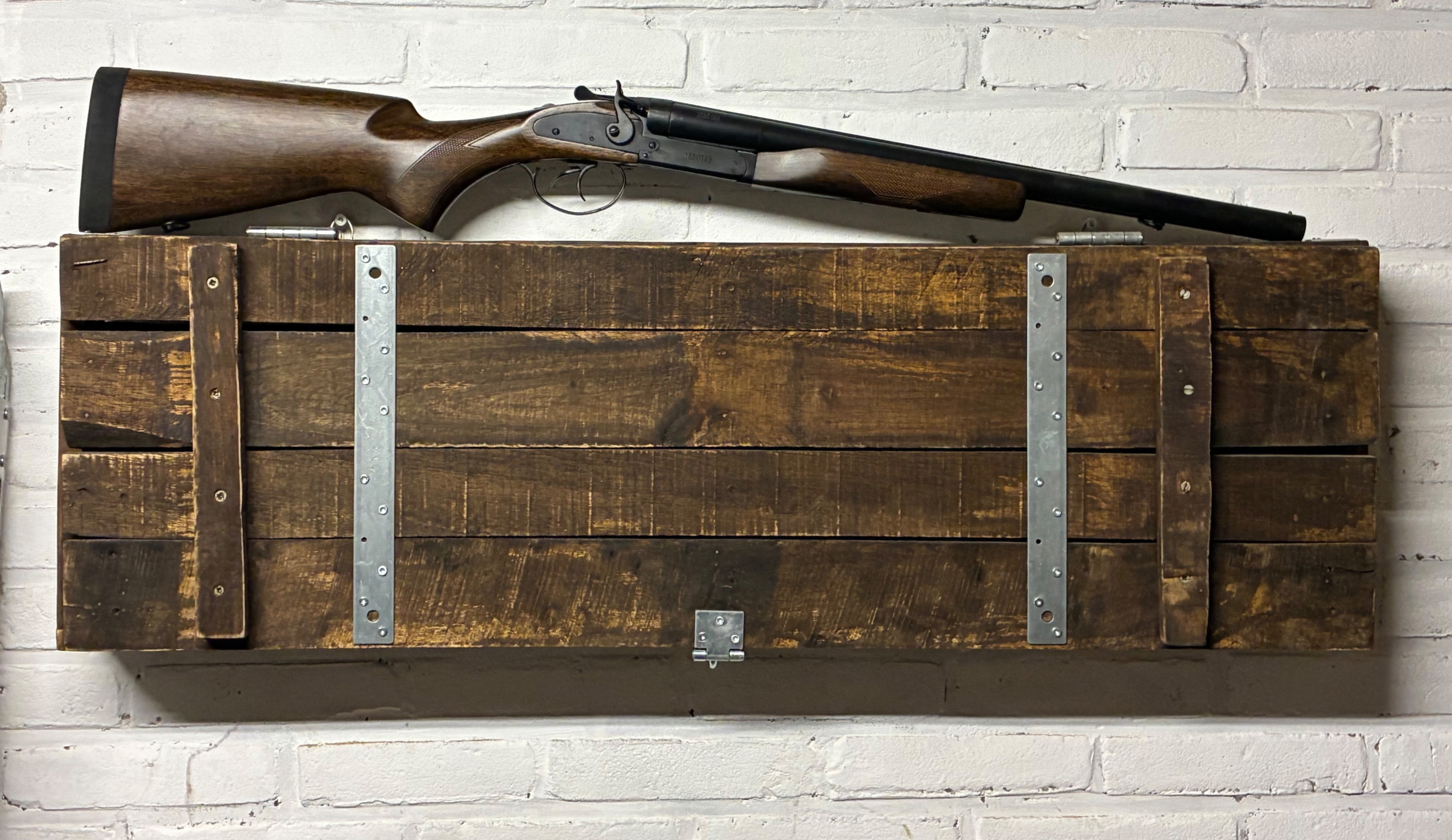 Unieke double barrel Shotgun STEEL & WOOD