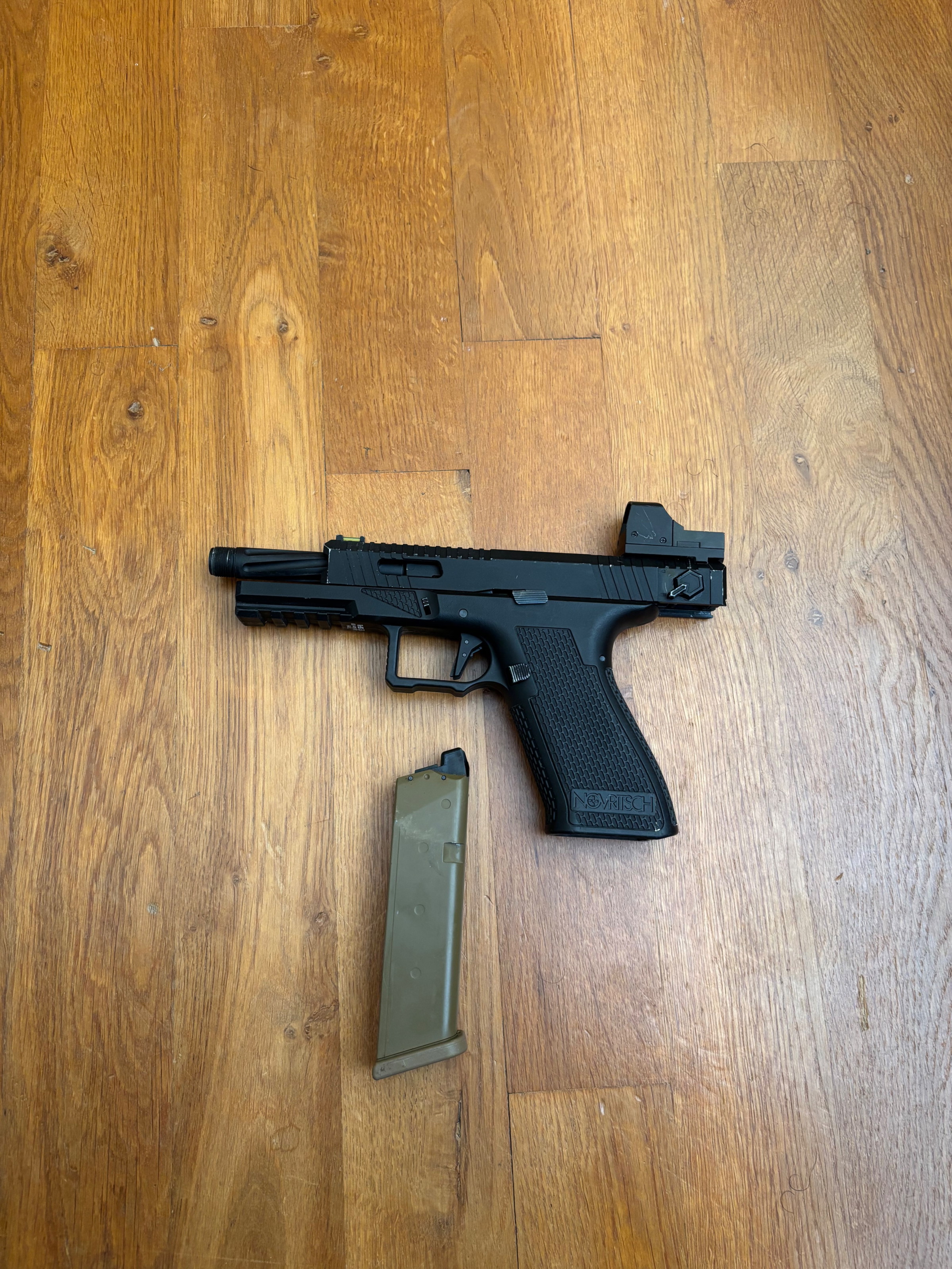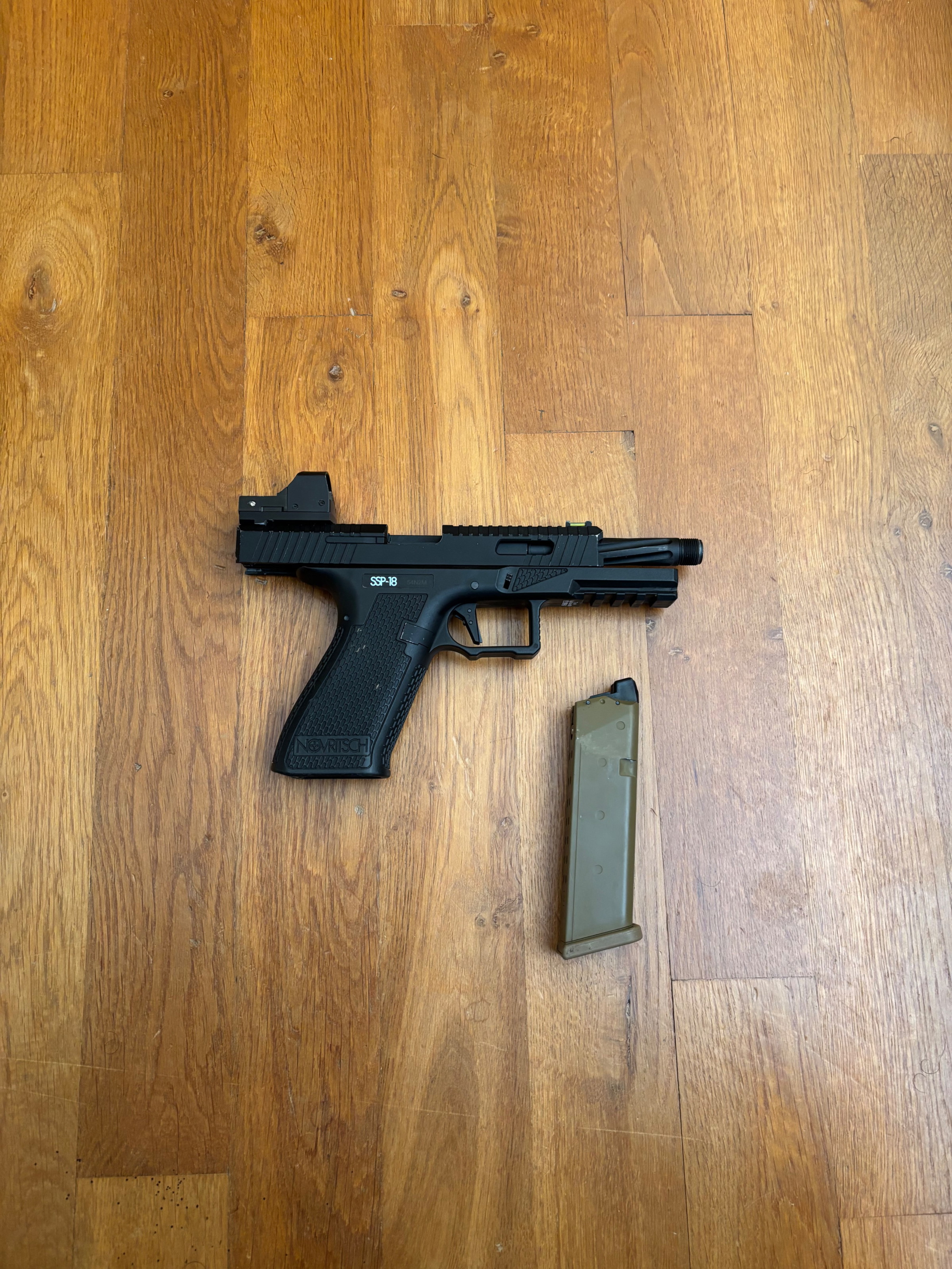 Hey there, I am selling my novritsch Ssp18. Shoots Semi and Fullauto. Works good on both modes. Included are a G&P micro reddot and a G19X green gas magazine. All is in a working order.