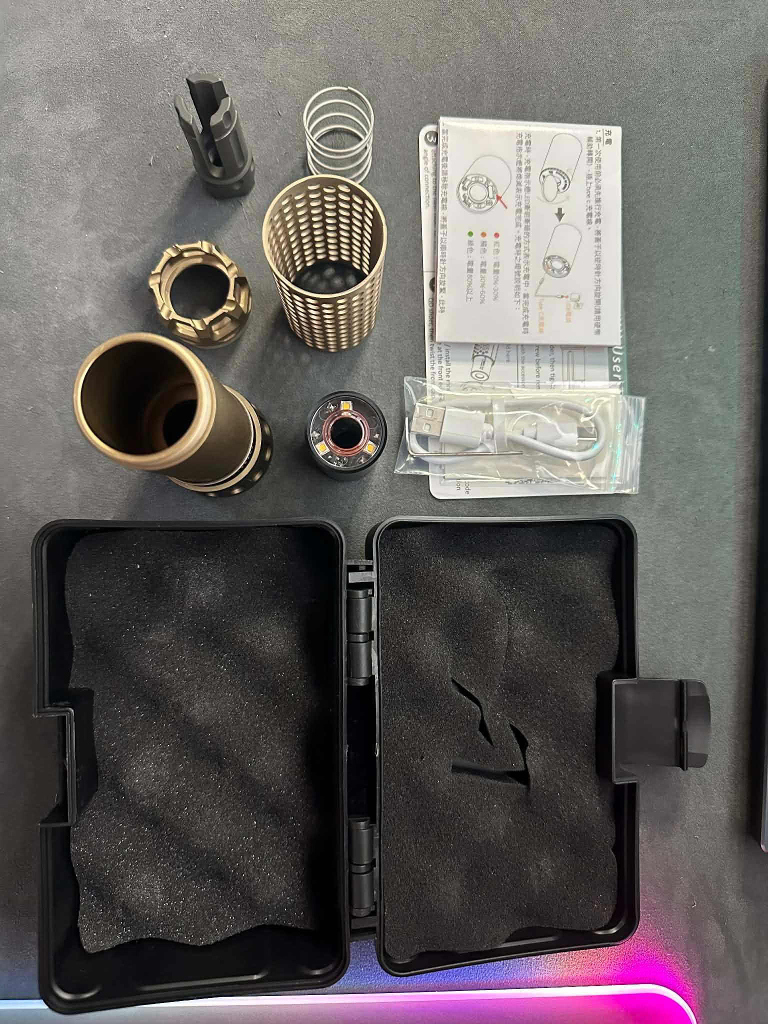 Peu utilisé, boite complète, parfait état de marche, quelques trace d'usure sur la carcasse du silencieux.