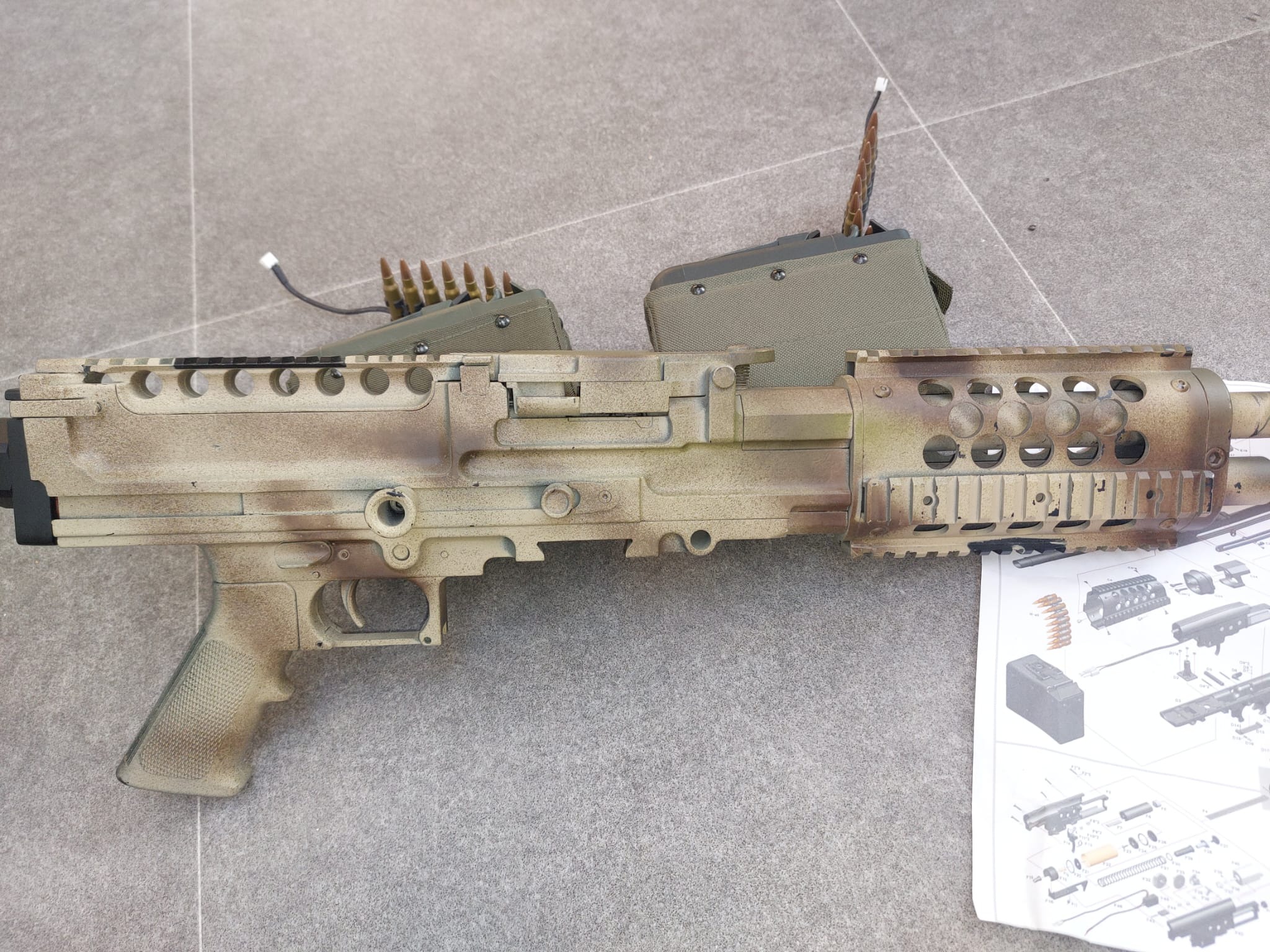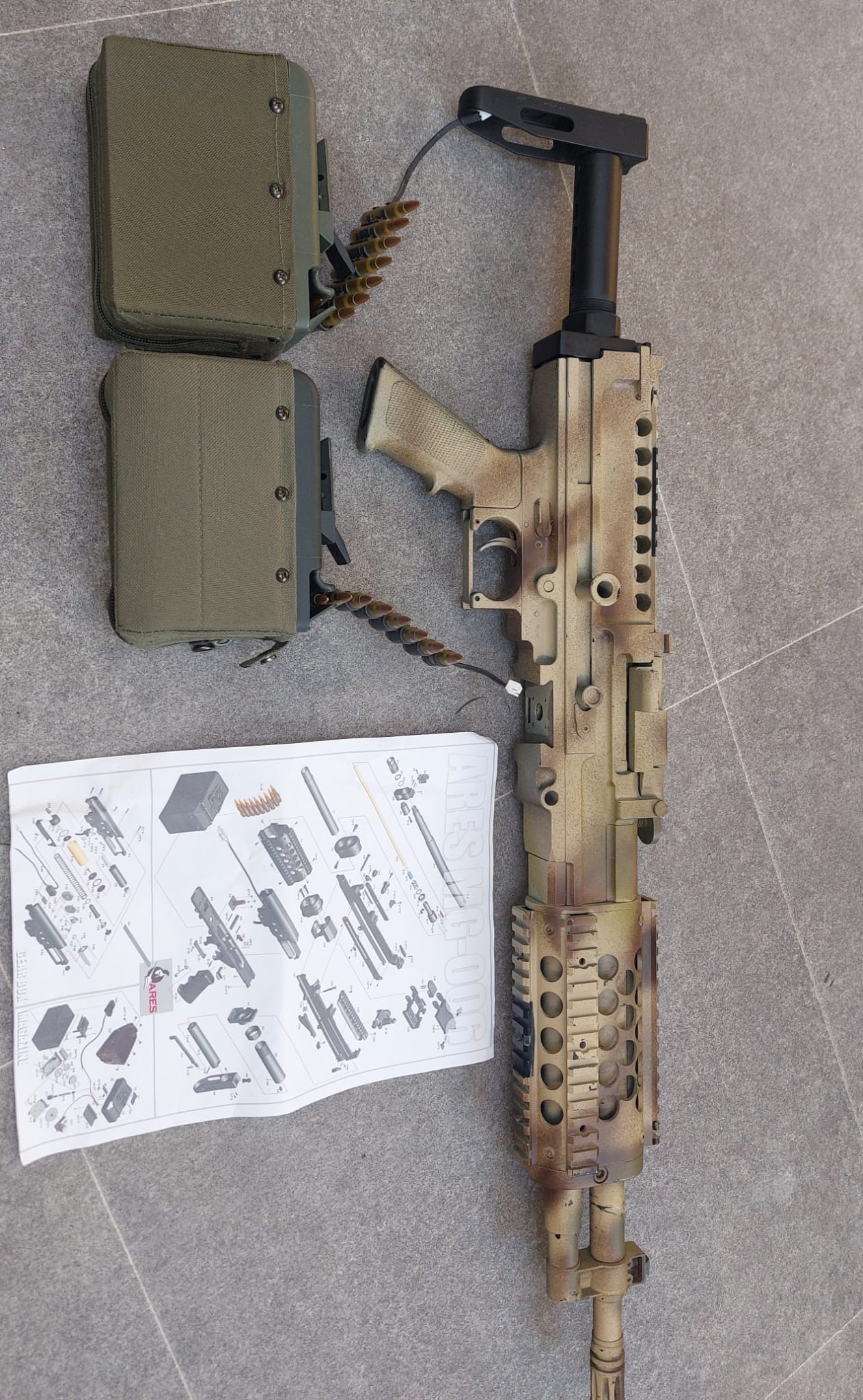 Een werkte Ares stoner met 2 boxmags heeft alleen een probleempje bij de stock (zie fotos) nieuwe stock van ares past niet helemaal goed erop