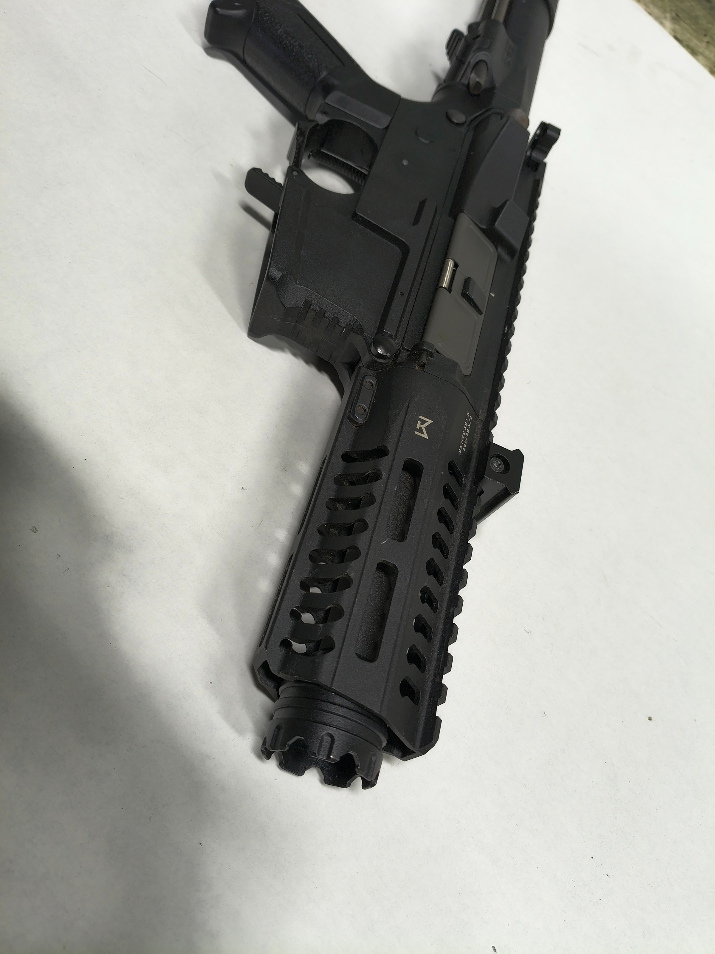 De dummy Bolt catch release ontbreekt, deze heeft bij deze replica geen functie, past een standaard M4 catch in.