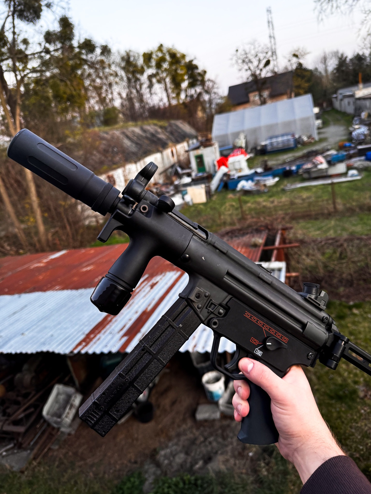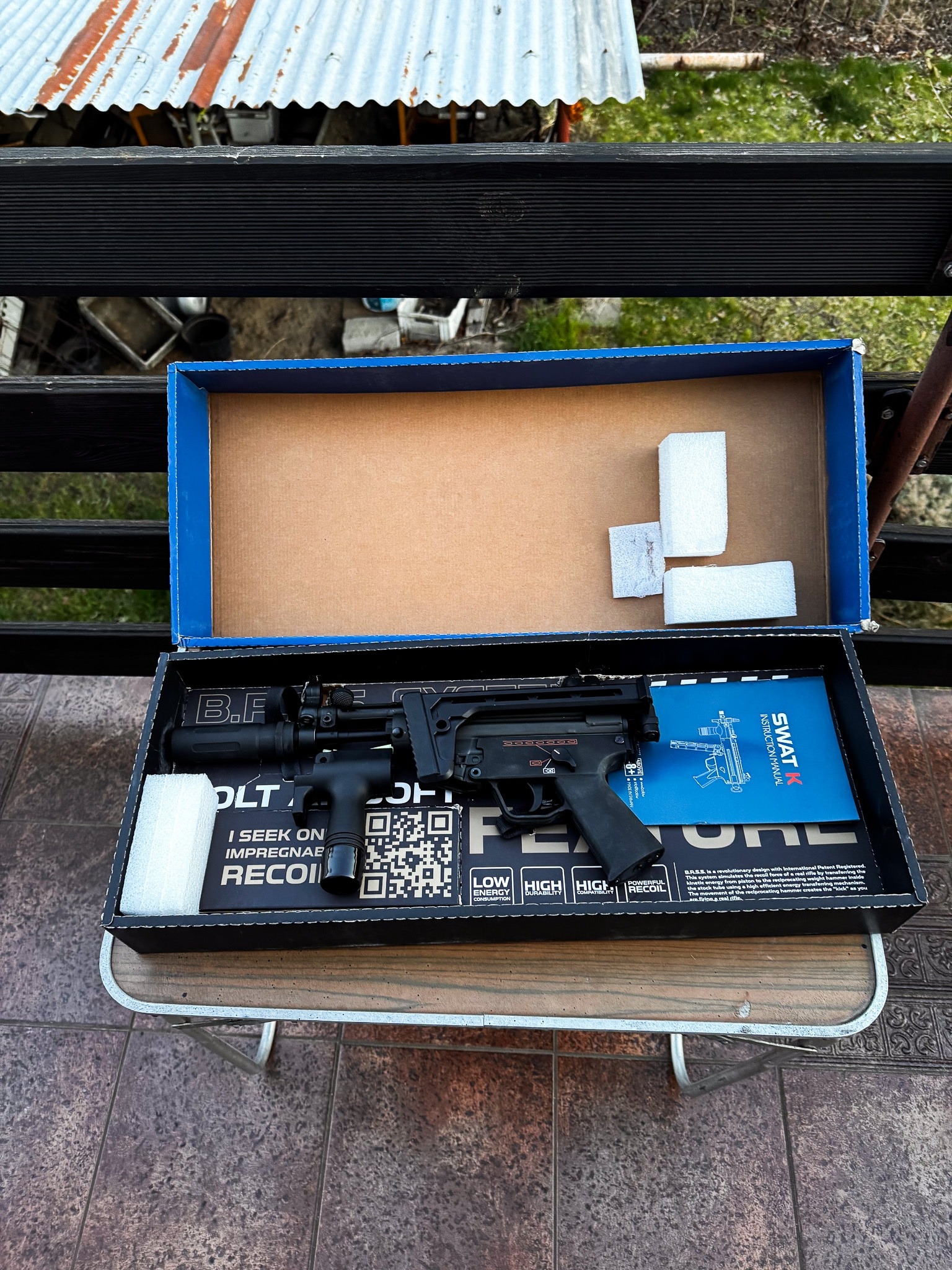 A compact AEG submachine gun, ideal for CQB. Made of steel and reinforced ABS (with fiberglass), it combines durability with low weight. Its biggest advantage is the B.R.S.S (recoil) system, which realistically simulates recoil and bolt movement, bringing the experience closer to gas-powered replicas.