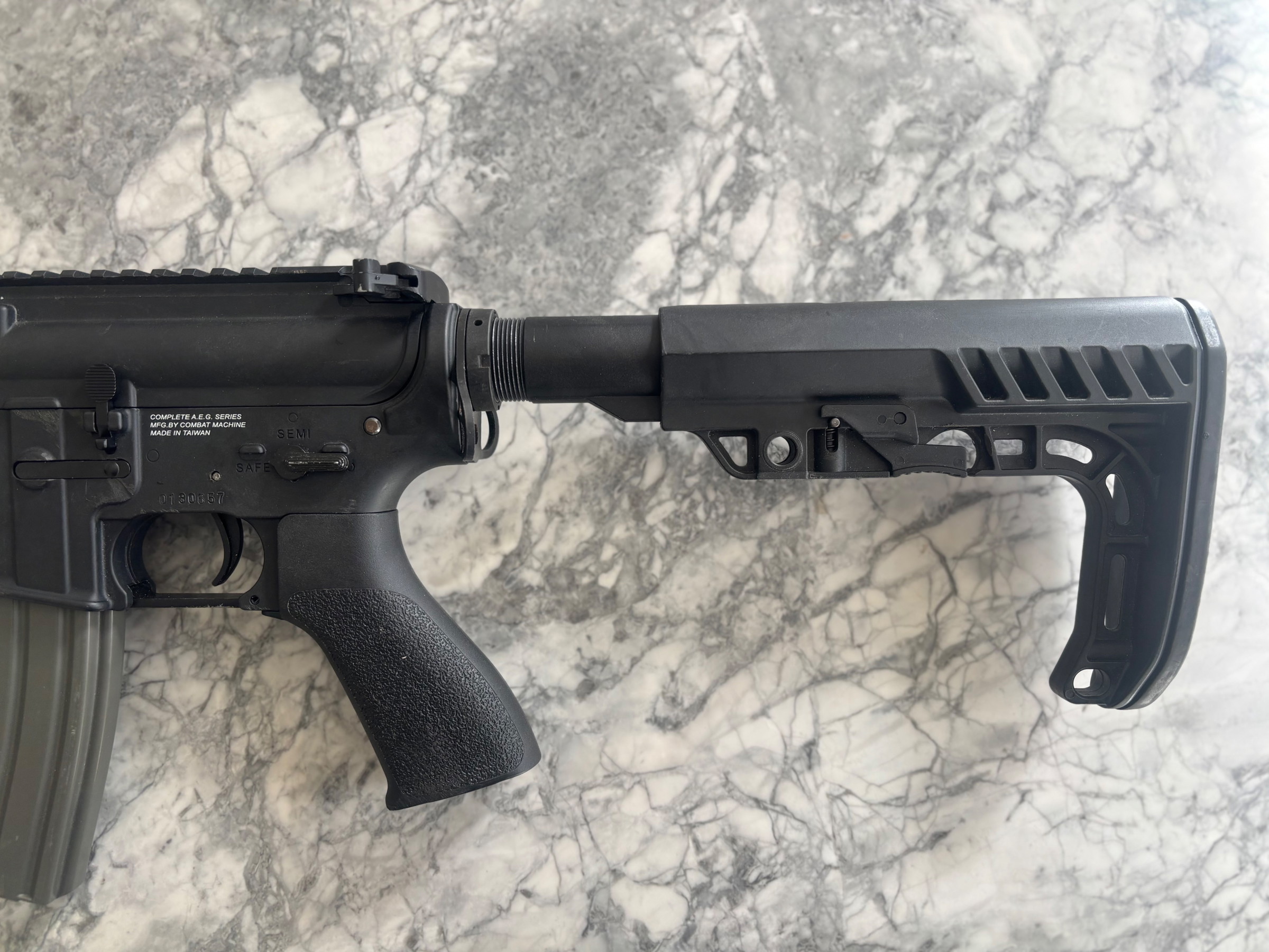 Zeer compacte replica ideaal voor gebruik in CQB en toch te gebruiken met standaard m4 magazijnen.