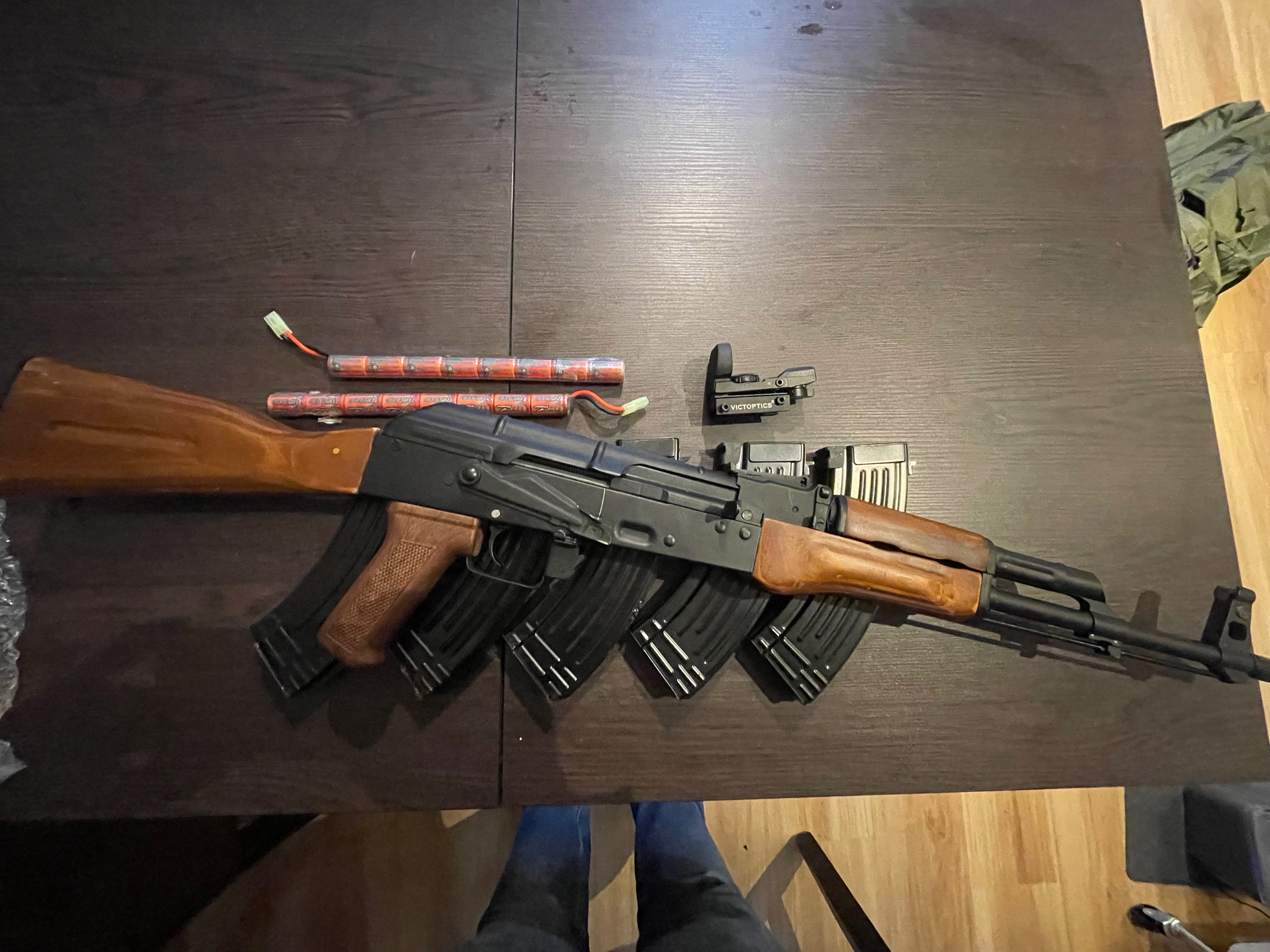 De replica komt met 5 magazijnen, 2 batterijen, red dot