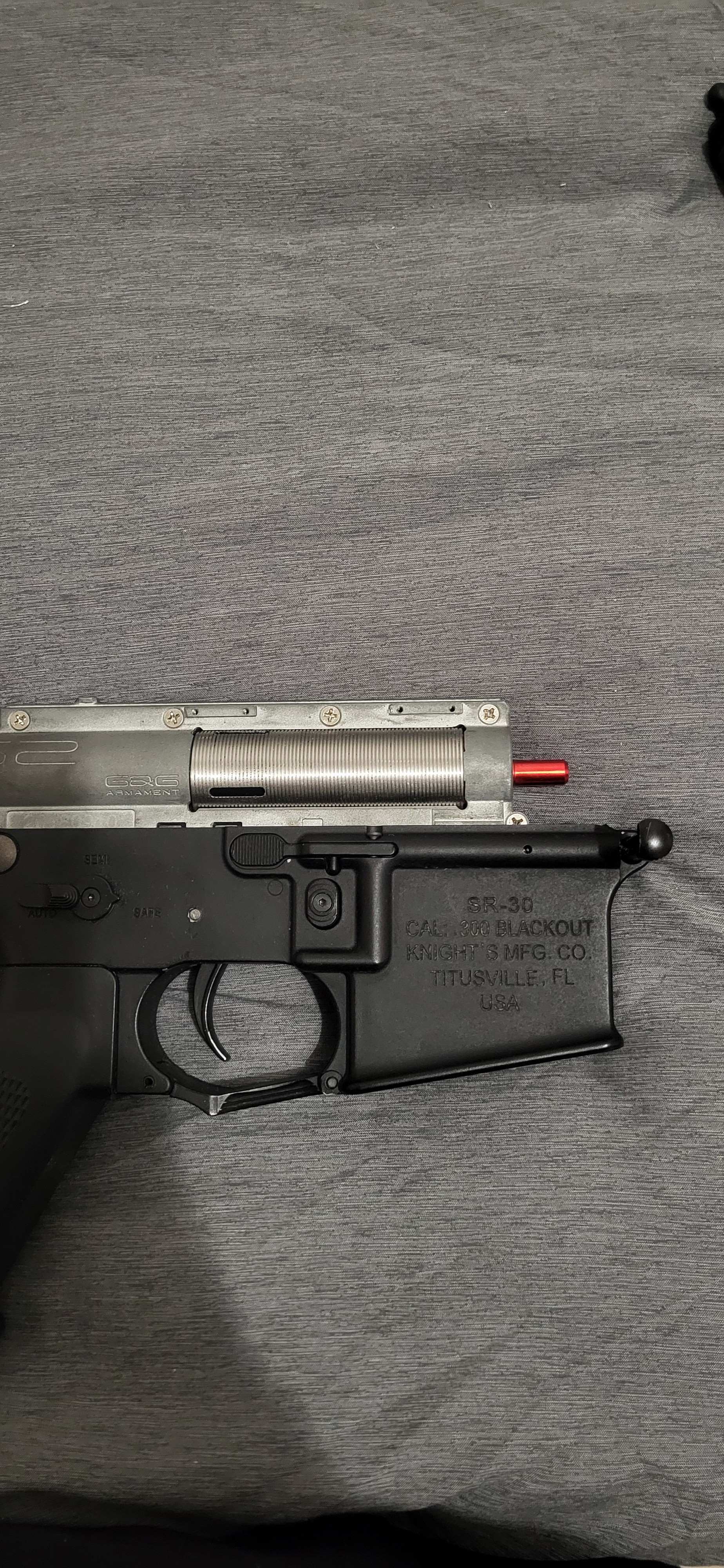 The aeg is adjusted for 0.32g bbs and the gearbox is quick change capable.